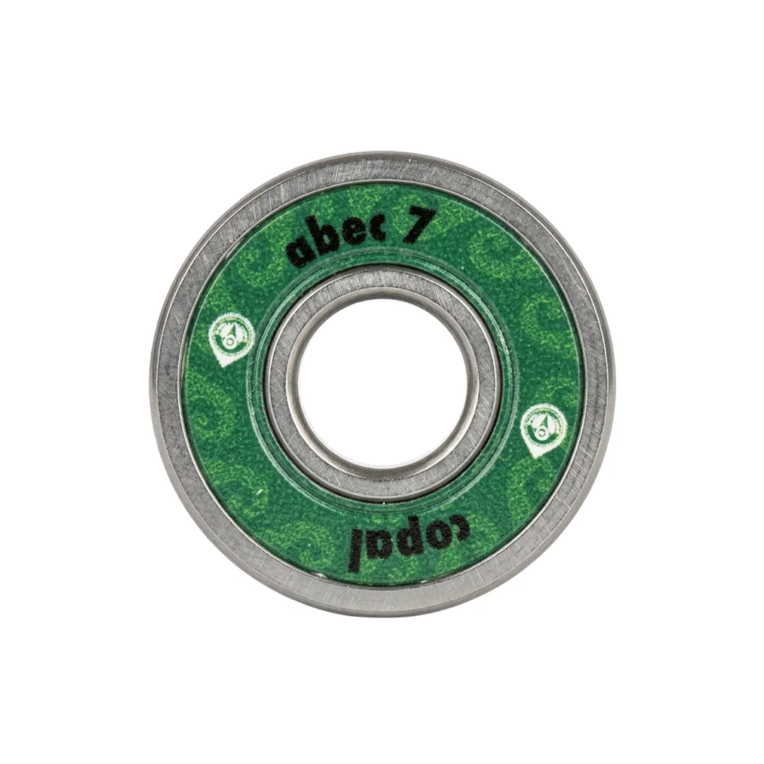 Baleros Copal Verdes ABEC 7 ¡Estabilidad y flujo constante para dominar el asfalto! Los baleros Copal destacan por su excelente relación calidad-precio, presentando un llamativo escudo protector en color verde bosque que le da un toque orgánico y fresco a tu setup. Con una clasificación ABEC 7, estos rodamientos son el setup definitivo para patinadores que buscan un rodaje suave, veloz y confiable tanto en sesiones de skatepark como en recorridos urbanos. Gracias a su construcción balanceada, es la herramienta adecuada para quienes exigen precisión sin comprometer la durabilidad.