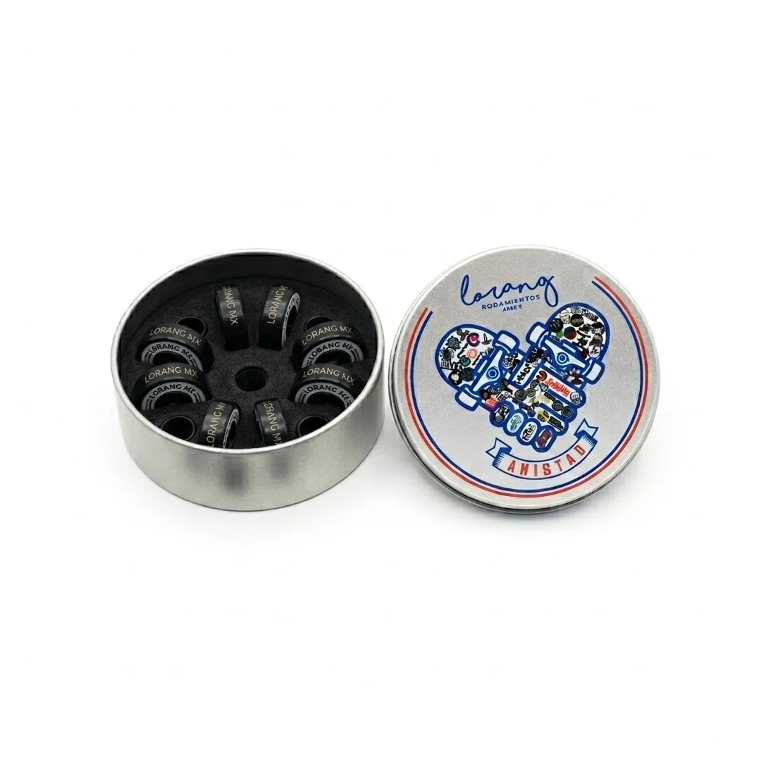 Baleros Lorang Amistad ABEC 9. Celebra la cultura del skate nacional con los baleros Amistad de Lorang. Este set de edición especial destaca por su diseño inspirado en la unión y comunidad de los patinadores, presentando un escudo blanco con detalles en azul y rojo que lucen increíbles en cualquier rueda. Al ser de clasificación ABEC-9, están construidos para ofrecer una rotación veloz y de alta precisión, permitiéndote rodar distancias más largas con menos esfuerzo.