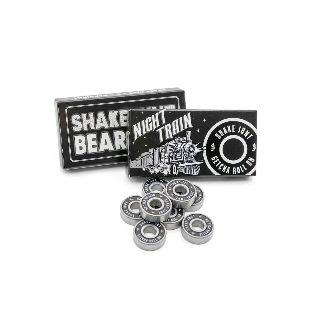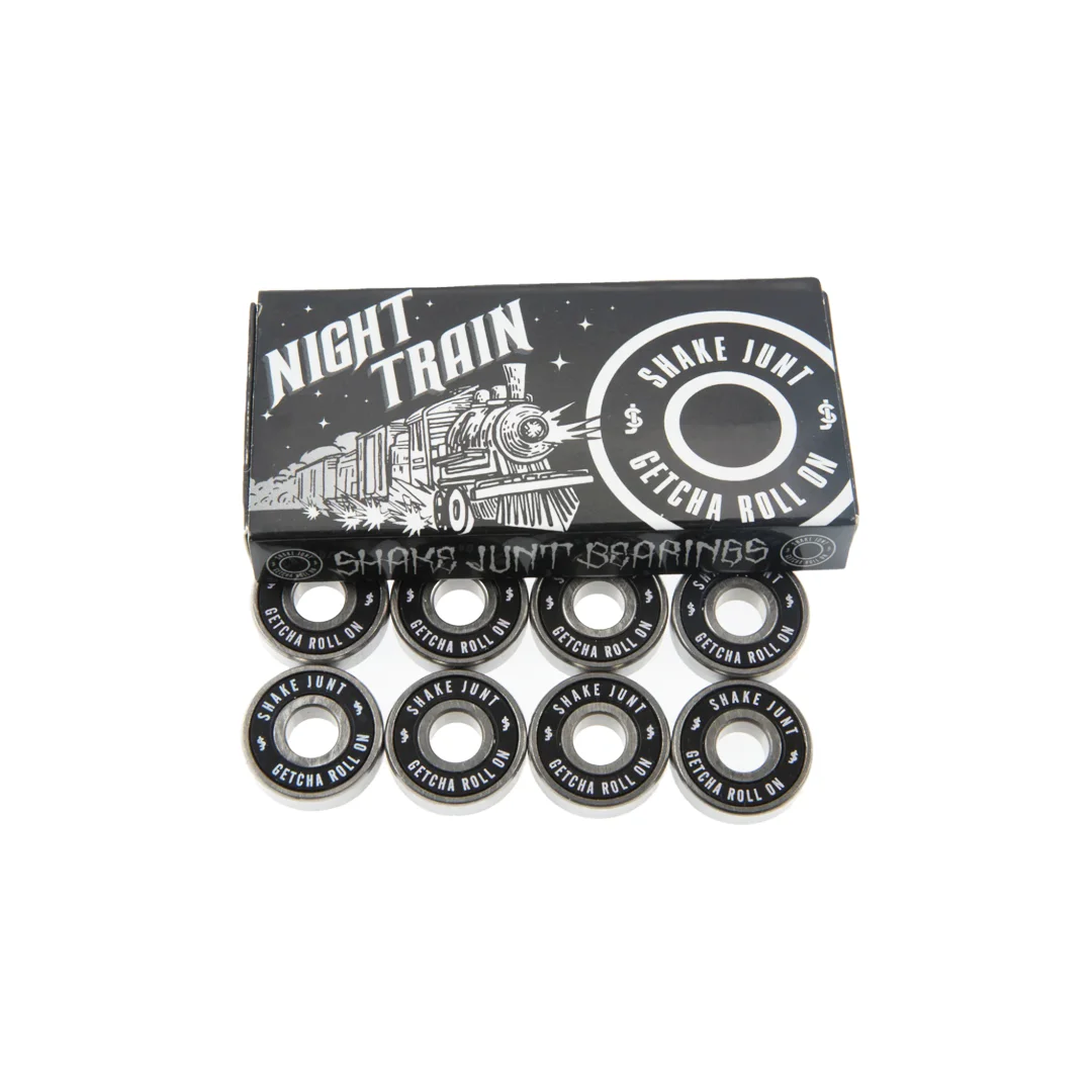 Baleros Shake Junt Night Train ¡Velocidad constante y un estilo oscuro para dominar la noche! Los baleros Night Train de Shake Junt destacan por su estética técnica y elegante, presentando una tapa protectora en color negro sólido con el nombre de la marca y la legendaria frase “GETCHA ROLL ON” en letras blancas contrastantes. Con una precisión de grado ABEC 7, son el setup definitivo para patinadores que buscan un rodaje veloz y profesional sin sacrificar la durabilidad necesaria para el skate callejero. Gracias a su construcción balanceada, es la herramienta adecuada para mantener la inercia en cada línea y patinar con toda la actitud de la marca más ruda de la industria.