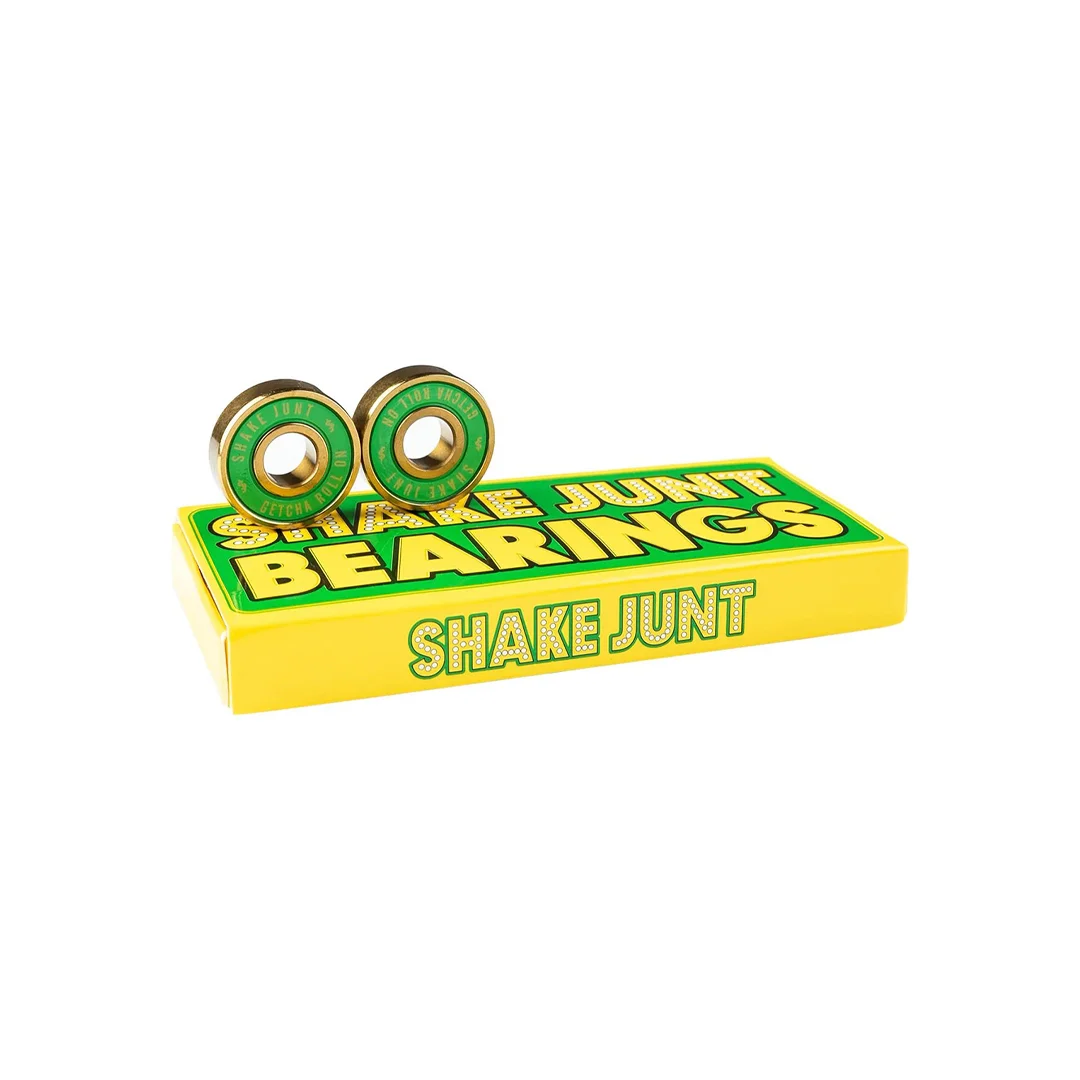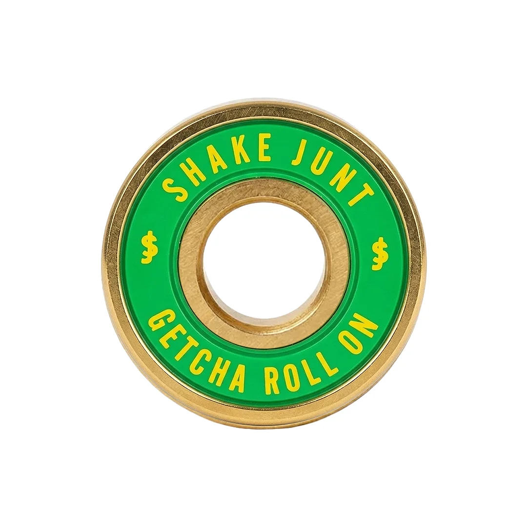 Baleros Shake Junt Triple O.G.’s ¡Estilo de lujo y un rodaje impecable para que nunca dejes de avanzar! Los baleros Triple O.G.’s de Shake Junt destacan por su impresionante acabado en color oro pulido, contrastado con una tapa de goma en color verde vibrante que luce el nombre de la marca y la icónica frase “GETCHA ROLL ON” en letras amarillas. Con una precisión de grado ABEC 7, son el setup definitivo para los patinadores que buscan una combinación perfecta entre velocidad de alto nivel y una estética deslumbrante. Gracias a su fabricación con materiales de primera, es la herramienta adecuada para ganar una inercia constante y dominar cualquier spot con el sello de calidad de una de las marcas más representativas del skate callejero.