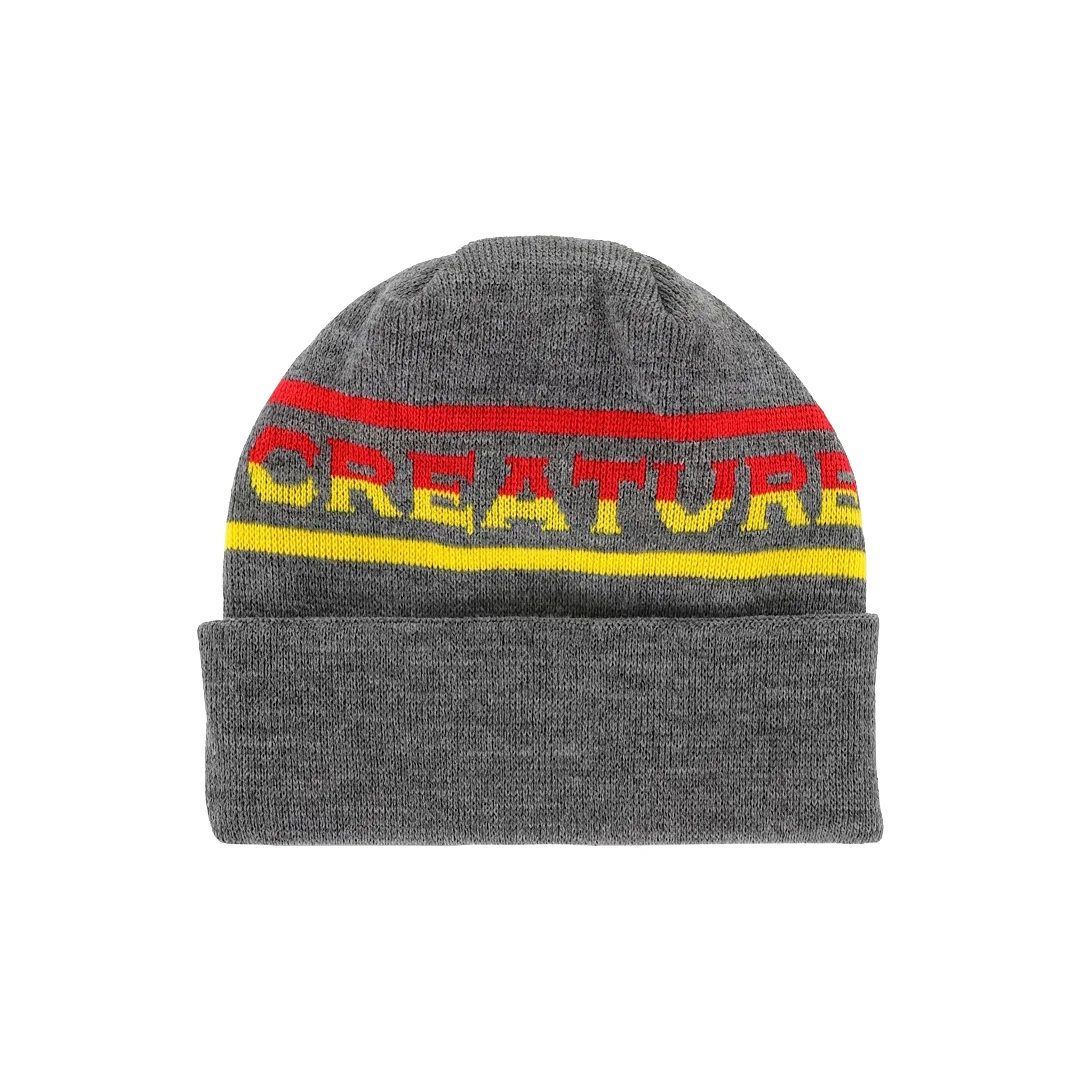 Beanie Creature Burnoutz Long Shoreman Grey. Desata el lado oscuro del skate con el Beanie Creature Burnoutz, una pieza inspirada en el estilo “Long Shoreman” de los trabajadores del muelle pero con el ADN gráfico de Creature. En un tono gris base, este gorro destaca por su franja horizontal con el texto “BURNOUTZ” en colores fuego y la discreta etiqueta de la marca en el doblez. Es la opción ideal para quienes buscan un accesorio con un toque retro y una vibra agresiva.