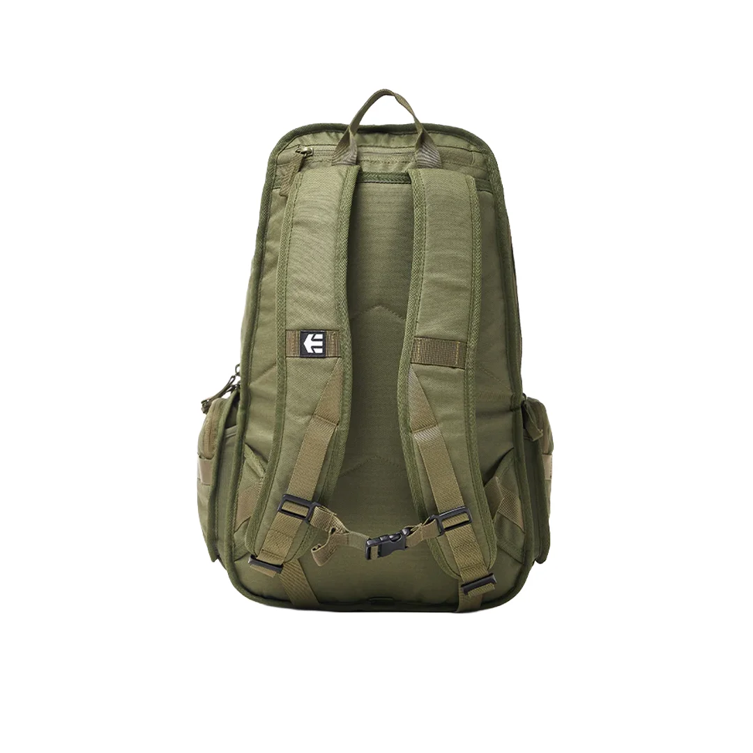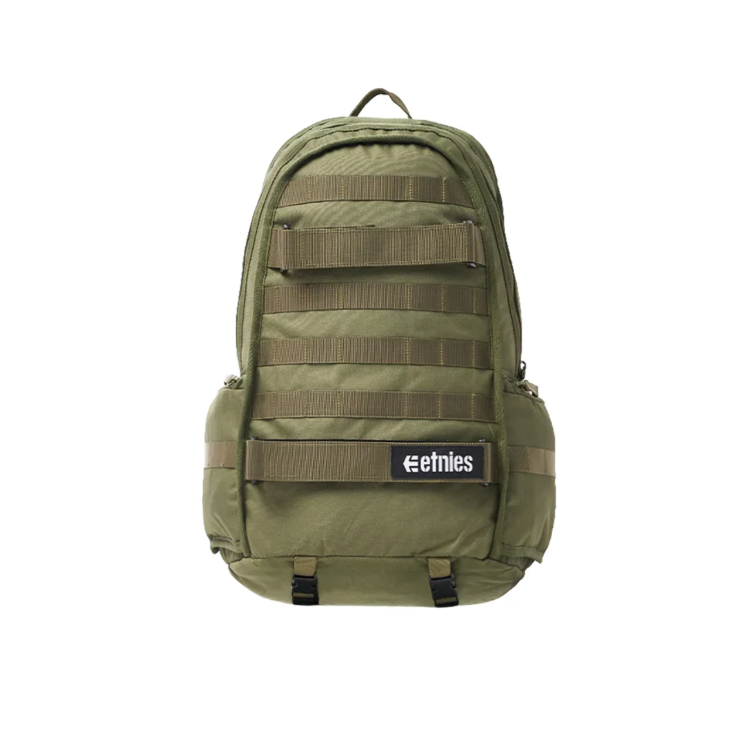 Mochila Etnies Marana Backpack Olive. Diseñada con la misma durabilidad legendaria que los calzados de la línea Marana, esta mochila en color verde olivo es la herramienta definitiva para el skater que necesita funcionalidad y resistencia. Con una estética de inspiración militar y detalles técnicos pensados para el uso diario, la Etnies Marana ofrece un espacio optimizado para tu equipo y tus dispositivos electrónicos.