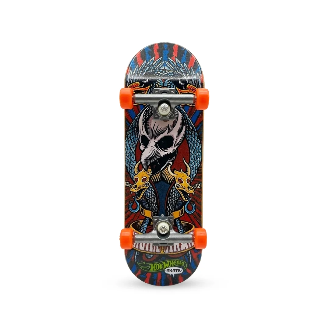 – Gráficos de Impacto: La tabla presenta un arte detallado con motivos de calaveras y dragones, capturando la esencia rebelde y audaz del skateboarding profesional.