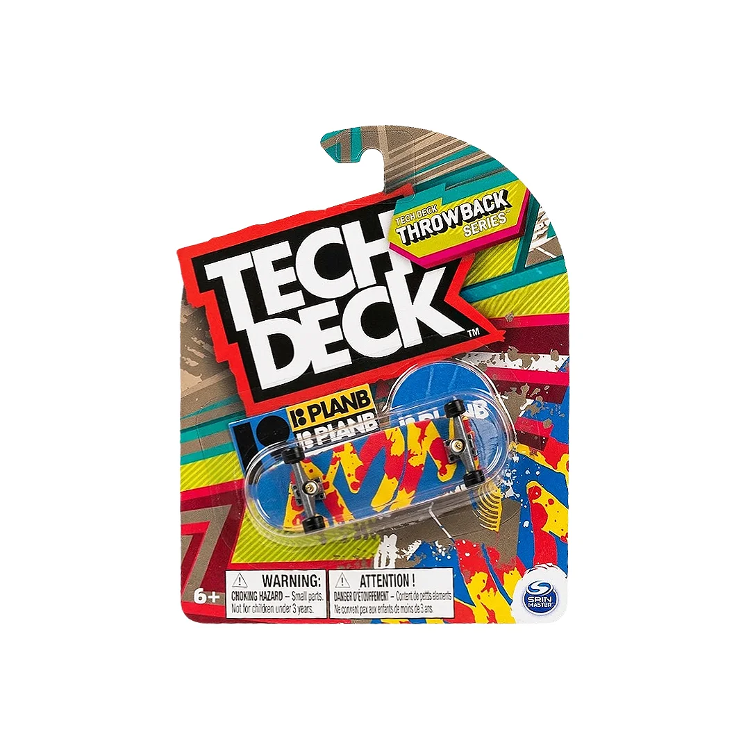 Fingerboard Tech Deck Throwback Series Plan B Ultra Rare ¡Una pieza de historia pura para tu colección! Este Tech Deck de la Throwback Series presenta un gráfico legendario de Plan B Skateboards, una de las marcas más influyentes en la evolución del skate técnico. Con un diseño vibrante que combina azul, rojo y amarillo con el icónico logo de la marca, esta tabla es una edición Ultra Rare, lo que la sitúa como uno de los objetos más codiciados por coleccionistas a nivel mundial.