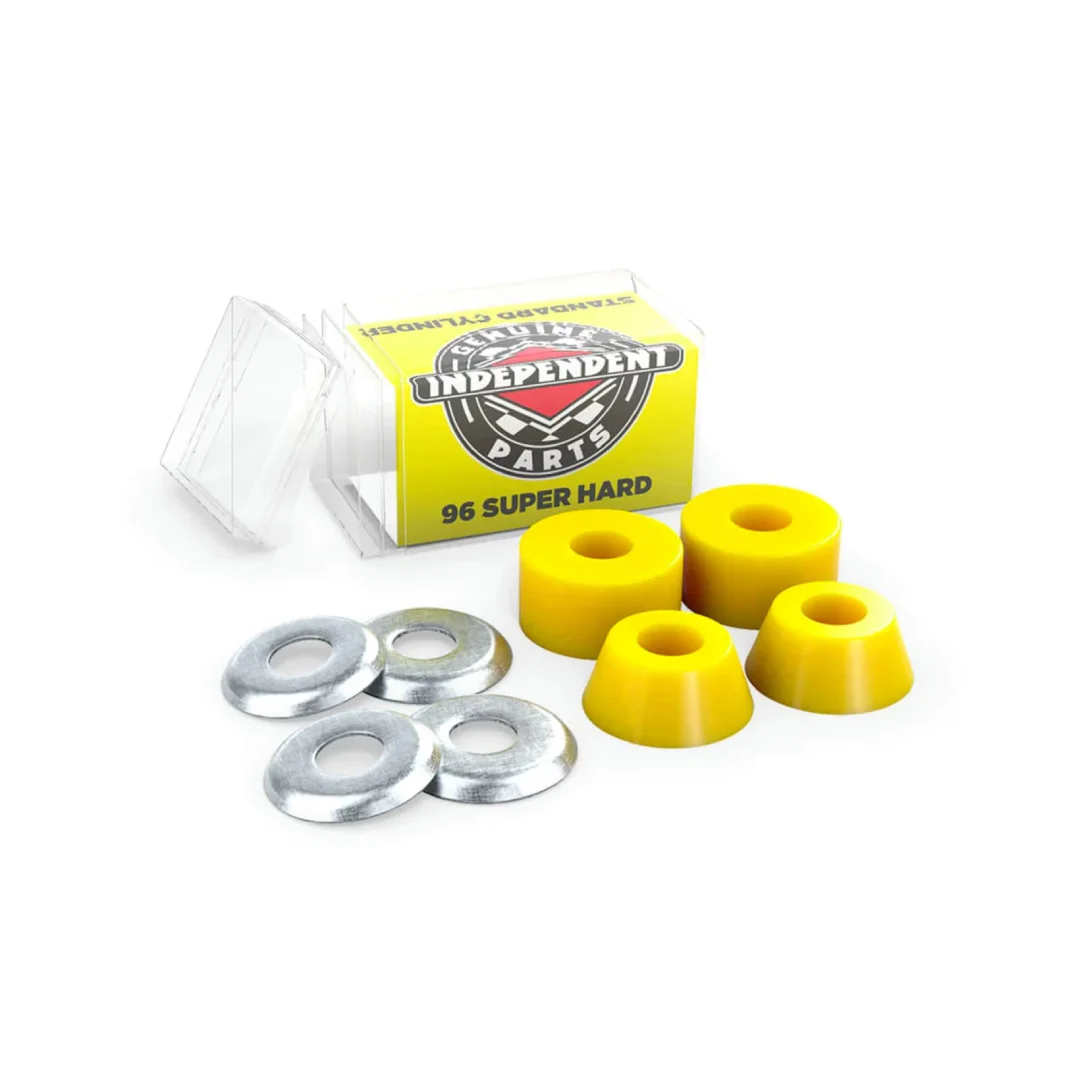 Gomas Cilíndricas Independent 96A Super Hard Amarillo ¡Estabilidad inquebrantable para un control de nivel superior! Las gomas amarillas 96A de Independent son las más rígidas de toda la línea. Están fabricadas para patinadores muy pesados, amantes de las bajadas rápidas a gran velocidad, o simplemente para quienes exigen que sus ejes no se muevan un solo milímetro, ofreciendo una plataforma estática y segura.