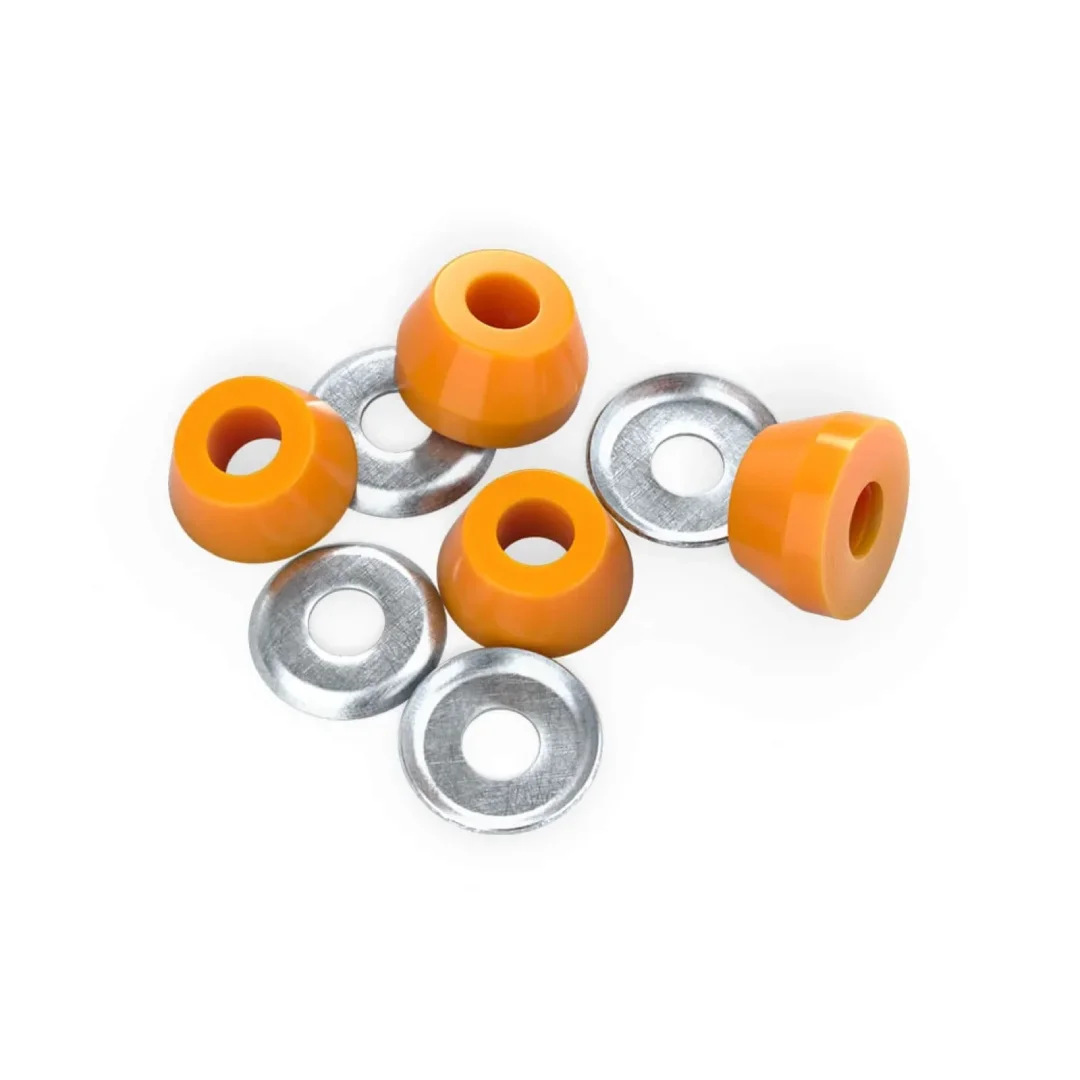 Gomas Cónicas Independent 90A Medium Naranja: ¡Optimiza tu giro con la precisión de Independent! Estos repuestos originales están diseñados para renovar la respuesta de tus trucks y adaptarlos a tu estilo de patinar. Con una dureza de 90A (Medium), ofrecen la resistencia ideal para mantener la estabilidad en trucos de impacto, permitiendo al mismo tiempo giros fluidos y controlados. Su forma cónica es perfecta para quienes buscan una respuesta de giro más rápida y profunda, ideal tanto para street como para transiciones.