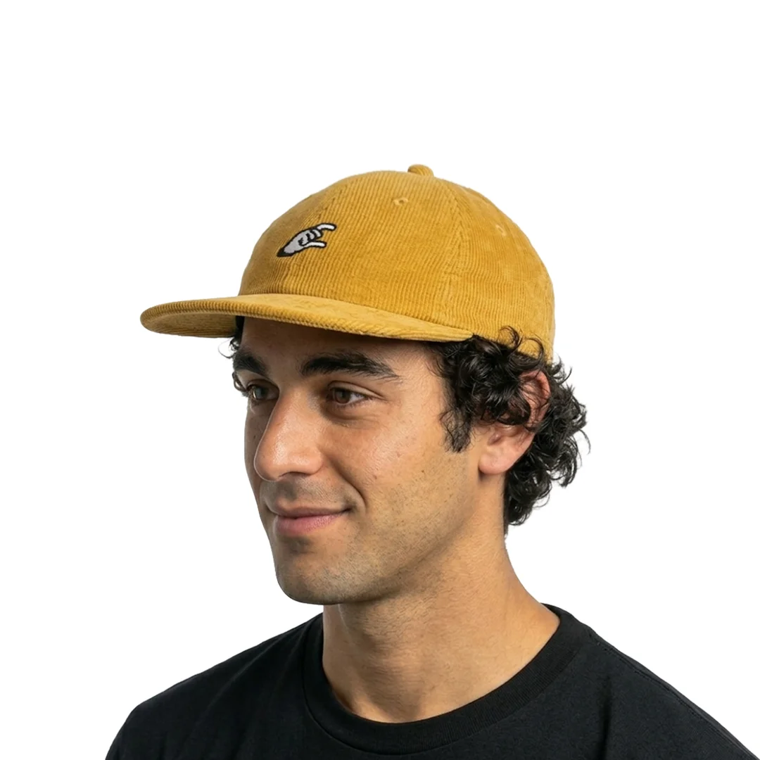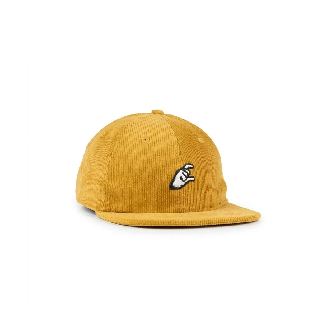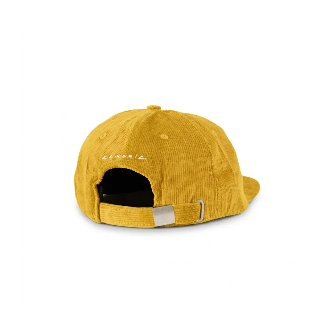 Gorra Classic C Hand Yellow. Añade un toque retro y sofisticado a tu estilo con esta gorra de la línea Classic. Destaca por su confección en pana (corduroy) de color amarillo mostaza, una textura que evoca la estética clásica del skate de los años 90. El detalle principal es el bordado frontal de la “C-Hand”, un gráfico minimalista y elegante que le da una identidad única sin saturar el diseño.