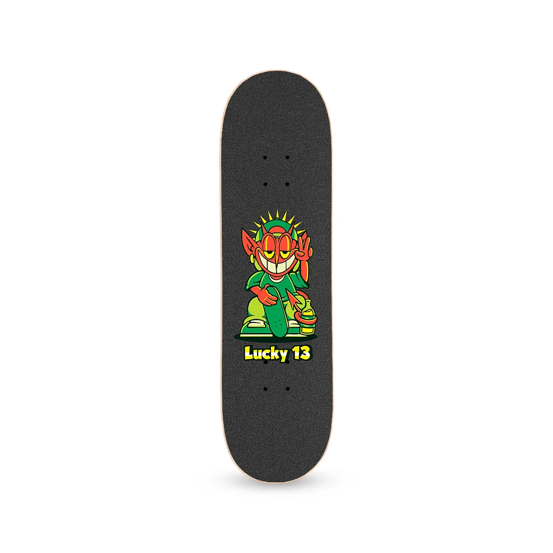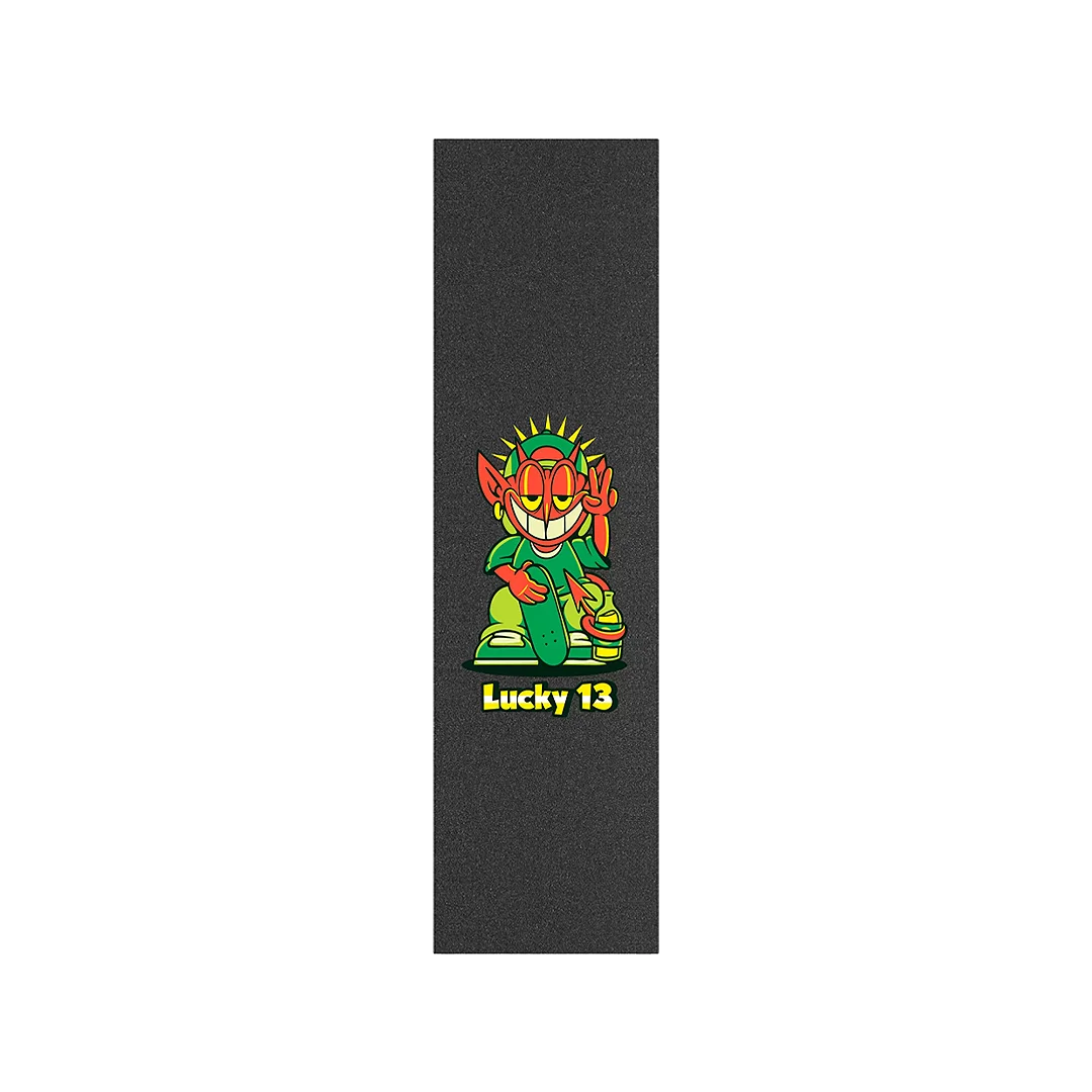 Lija 818 Grip X Jotch X Lucky Trece Diablito. ¡Inyecta actitud rebelde a tu tabla! Esta colaboración de triple marca presenta un diseño vibrante creado por el artista Jotch para Lucky Trece y 818 Grip. El gráfico muestra a un carismático diablito en tonos verdes y rojos que resalta con gran fuerza sobre el grano oscuro de la lija. Es la combinación perfecta entre arte urbano de alta calidad y rendimiento técnico.