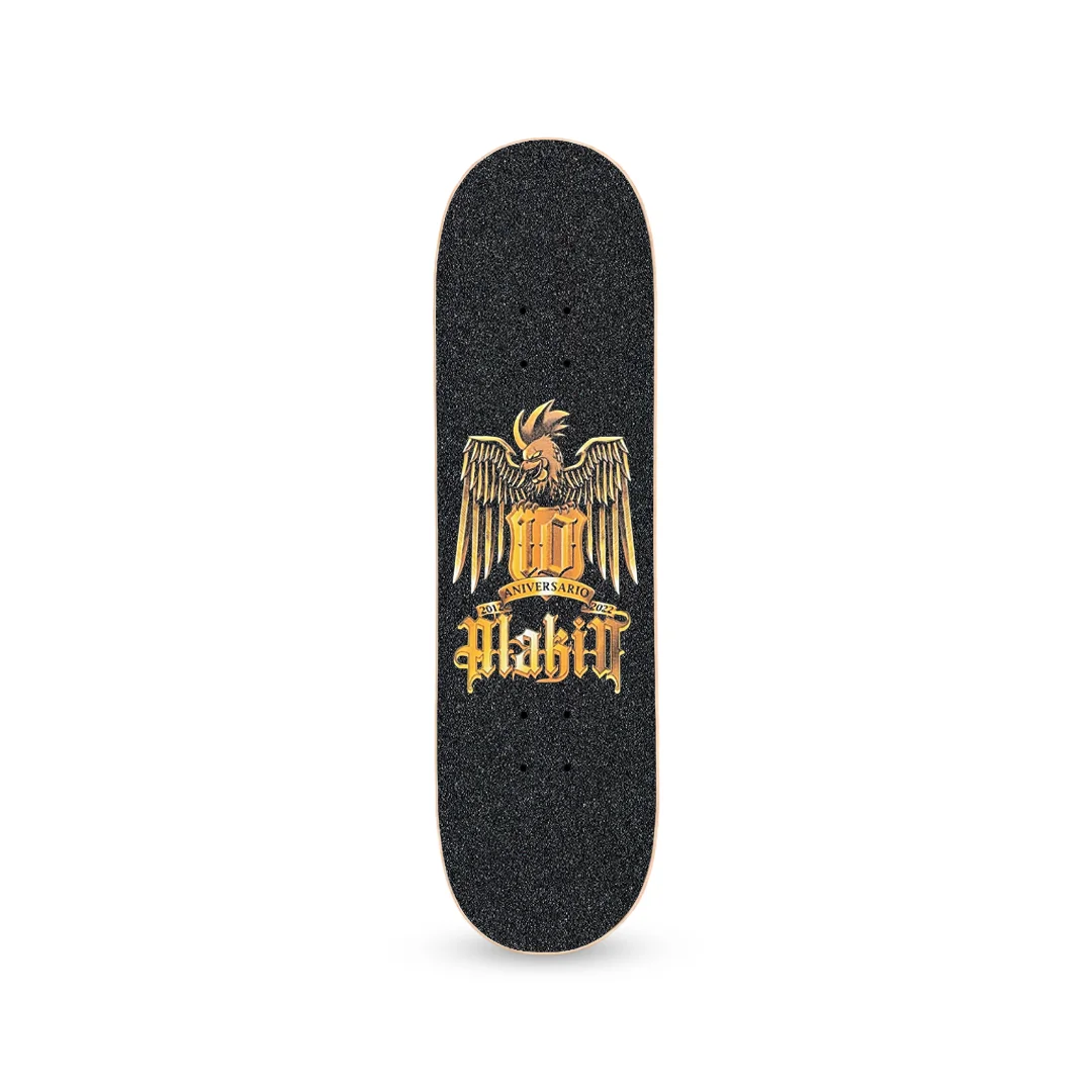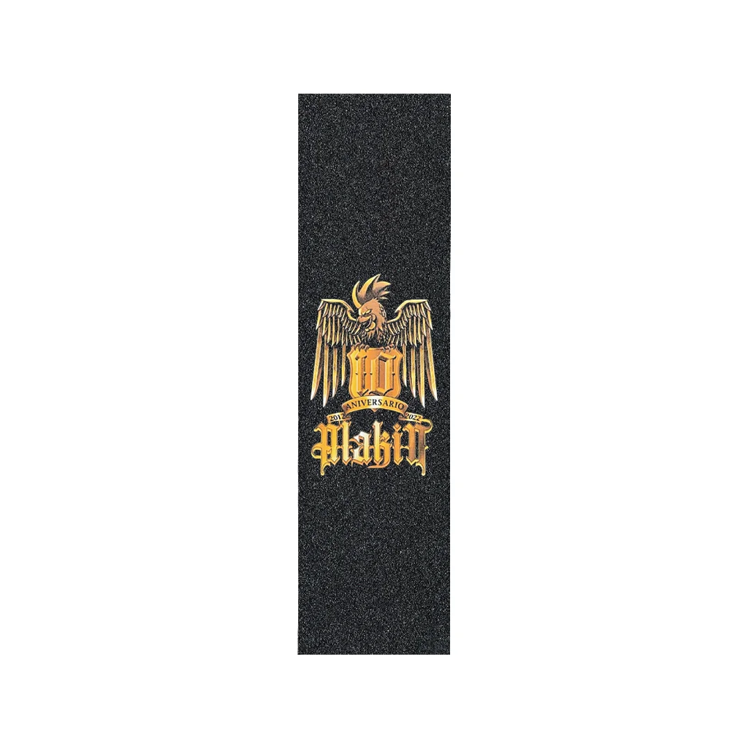 Lija Alakin 10 Aniversario. Celebra una década de cultura skate con la lija Alakin 10 Aniversario. Este modelo especial presenta un diseño conmemorativo con tipografía clásica y elementos gráficos que representan la trayectoria de la marca. Es una pieza de colección que combina un agarre excepcional con una estética que rinde homenaje a la persistencia del skate independiente.
