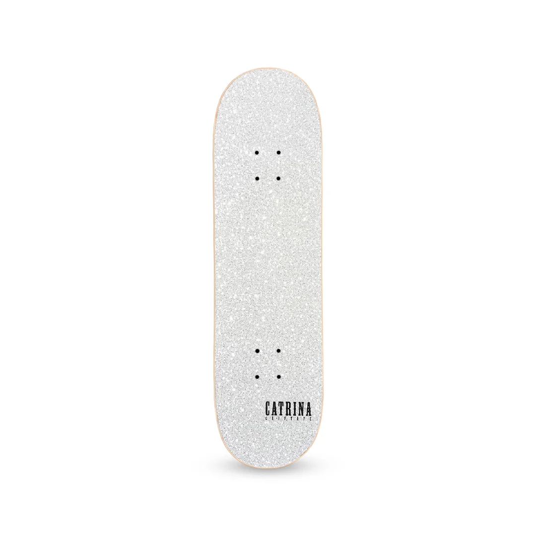 Lija Catrina Glitter Blanca ¡Un estilo “nieve” espectacular para tu tabla! La lija Blanca Glitter es la más luminosa de toda la gama, ofreciendo un efecto escarchado puro que hace que cualquier setup luzca impecable y moderno. Es ideal para resaltar los bordes de la tabla y combinar con cualquier color de trucks o ruedas. Ofrece la misma tracción profesional que las lijas oscuras, asegurando un desempeño técnico de primer nivel.