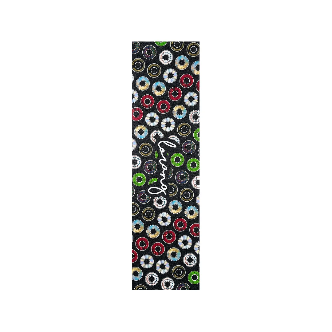 Lija Lorang Baleros Full. Si buscas que tu tabla tenga un aspecto dinámico y profesional, la lija Lorang Baleros Full es la elección definitiva. A diferencia del modelo estándar, esta versión presenta un patrón “all-over print” que cubre toda la superficie con los gráficos de los baleros más icónicos de la marca, incluyendo el diseño Amistad, Titanium y las ediciones de colores. Con el logotipo de Lorang firmado en blanco al centro, esta lija transforma tu deck en una verdadera pieza de arte urbano.