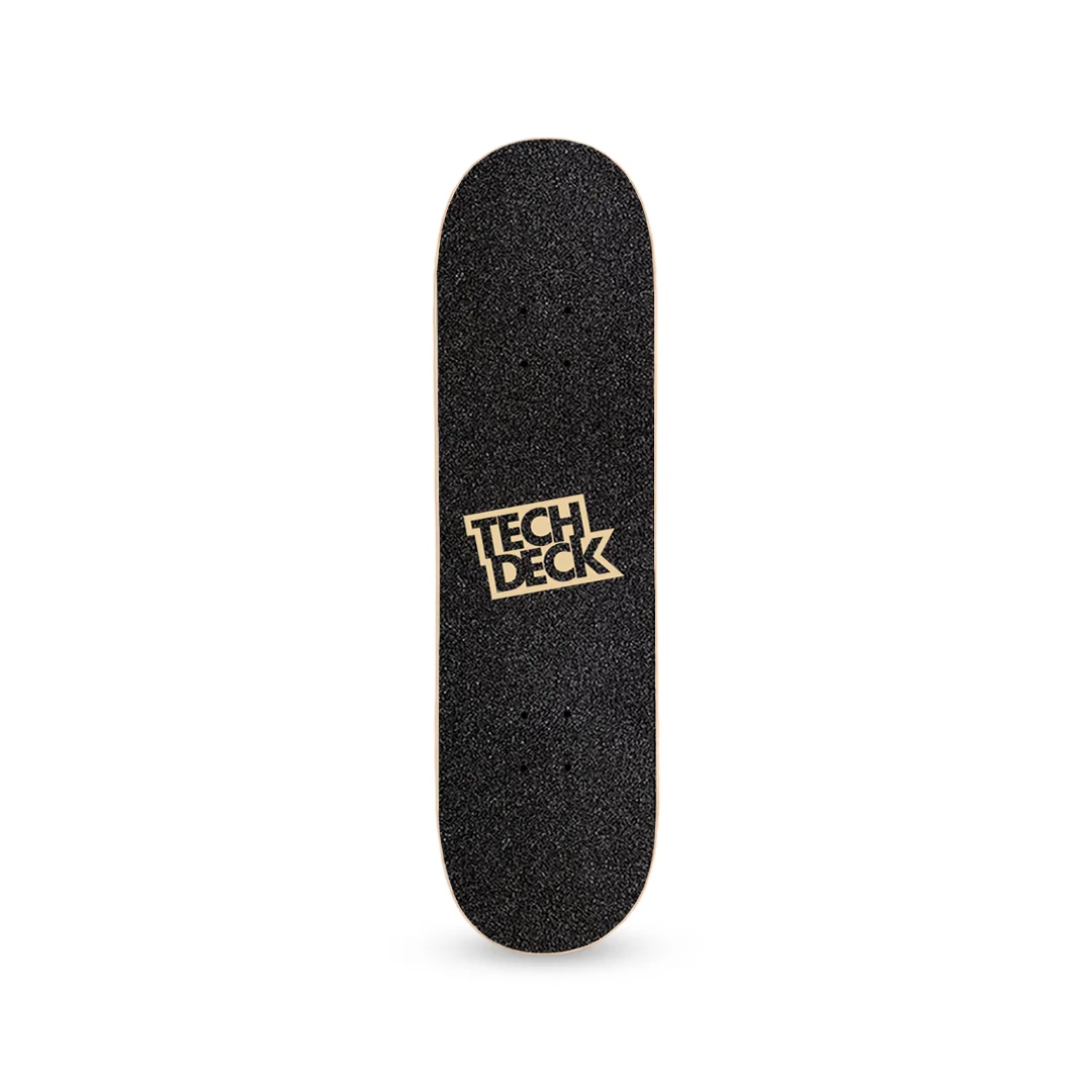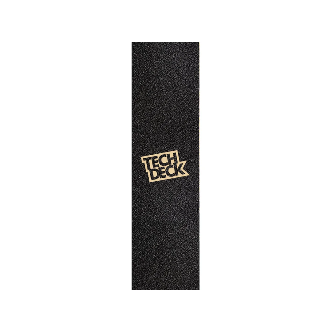 Lija Negra Corte Logo Tech Deck (Suaje). Dale un toque clásico y auténtico a tu tabla con la lija oficial de Tech Deck. Esta lija no es solo funcional, sino que rinde homenaje a la marca que llevó el skate a la palma de tu mano. Presenta un corte preciso (suaje) en el centro con el logotipo de Tech Deck, permitiendo que el color de la madera de tu deck resalte de manera elegante.