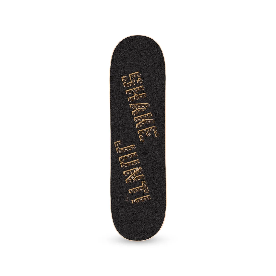 Lija Shake Junt Zion Wright Pro. Lleva el estilo de alta gama a tu tabla con la lija pro model de Zion Wright. Este diseño exclusivo de Shake Junt fusiona la estética del lujo con la cultura del skate callejero, utilizando el icónico logotipo de la marca relleno con un patrón de monograma inspirado en marcas de diseñador sobre un fondo negro clásico.