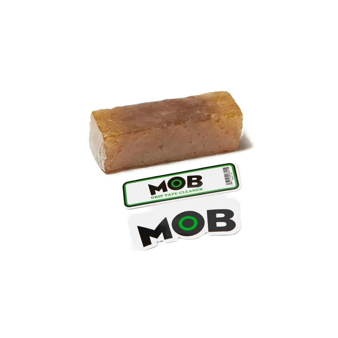Limpia Lija Mob Grip. Mantén tu tracción al máximo nivel con el limpiador de lija oficial de Mob Grip, la lija #1 preferida por los profesionales. Este bloque de caucho natural está diseñado específicamente para eliminar la suciedad incrustada en los granos de carburo de silicio, asegurando que tu tabla recupere el agarre agresivo que necesitas para tus trucos.