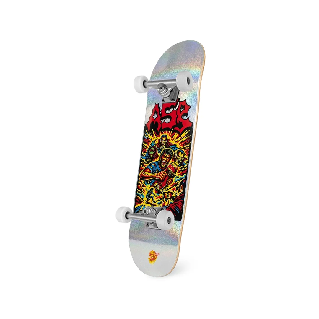 Patineta Armada Alebrije Escuadrón del Terror 8.5″ ¡Un equipo monstruoso listo para dominar cualquier terreno! Esta patineta armada monta el deslumbrante deck holográfico “Escuadrón del Terror” de Alebrije en la medida amplia de 8.5″. Es el setup ideal para el patinador que quiere un equipo que imponga respeto visual y ofrezca la máxima confianza bajo los pies. Gracias a su ancho, es perfecta para ganar estabilidad en altas velocidades o para aprender a fluir en las transiciones del parque.