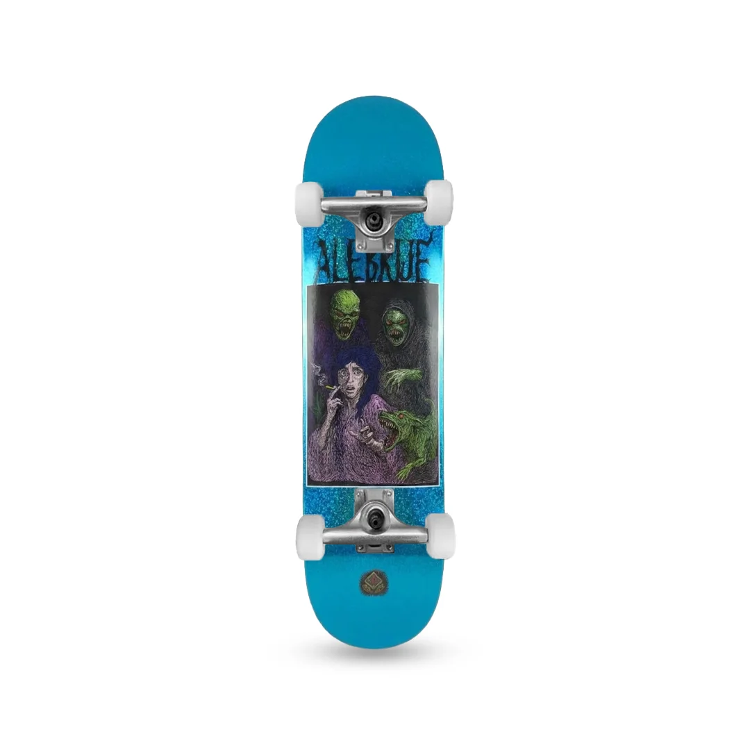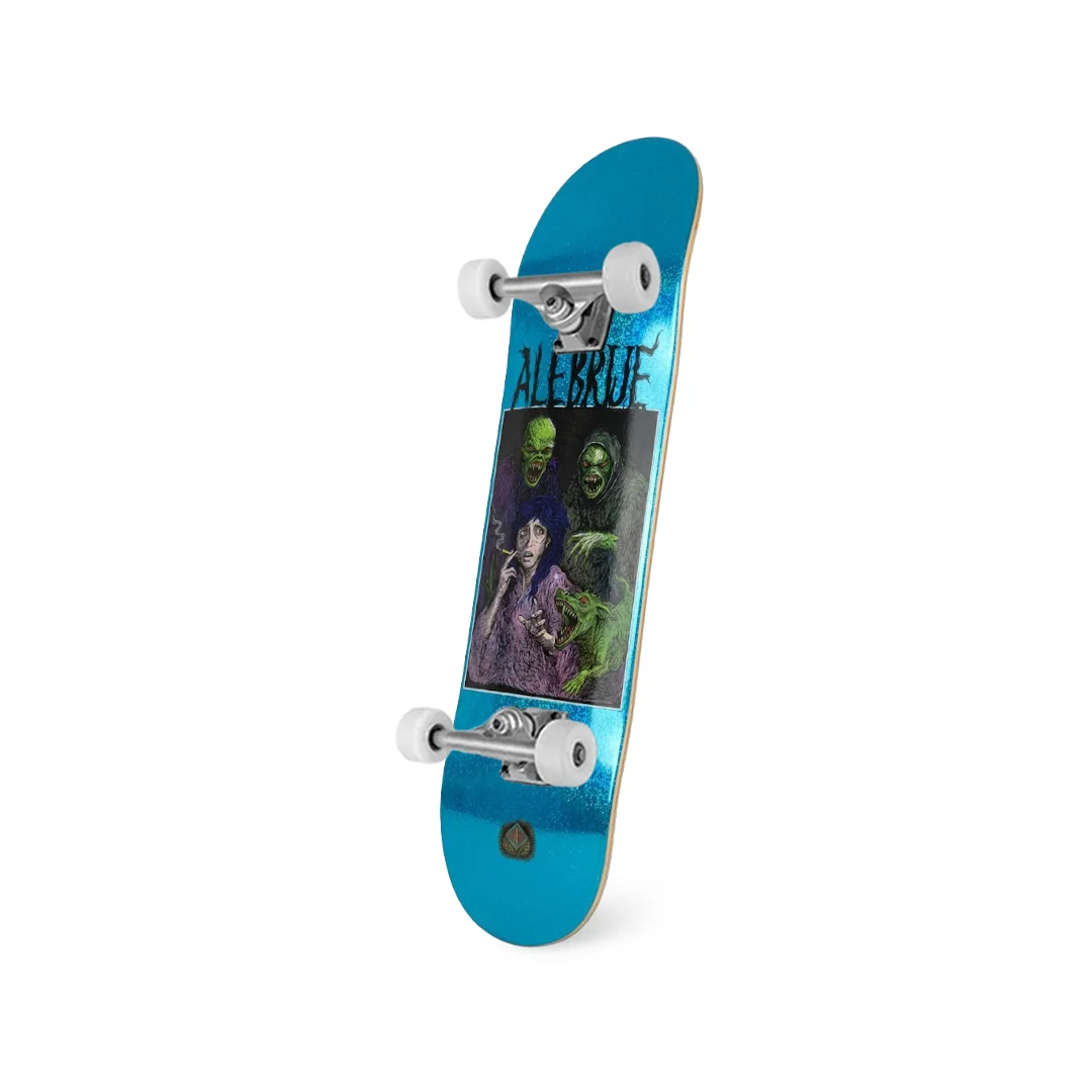 Patineta Armada Alebrije Parálisis de Sueño 8.25″ ¡Lista para escapar de las pesadillas sobre cuatro ruedas! Esta patineta armada monta el espectacular deck azul escarchado “Parálisis de Sueño” de Alebrije en la medida versátil de 8.25″. Es el equipo definitivo para el patinador que busca un setup con muchísima personalidad, combinando un gráfico de terror con un acabado de lujo que destella a la distancia. Ensamblada con componentes de alta resistencia, está lista para acompañarte a desbloquear trucos nuevos y dominar cualquier terreno.
