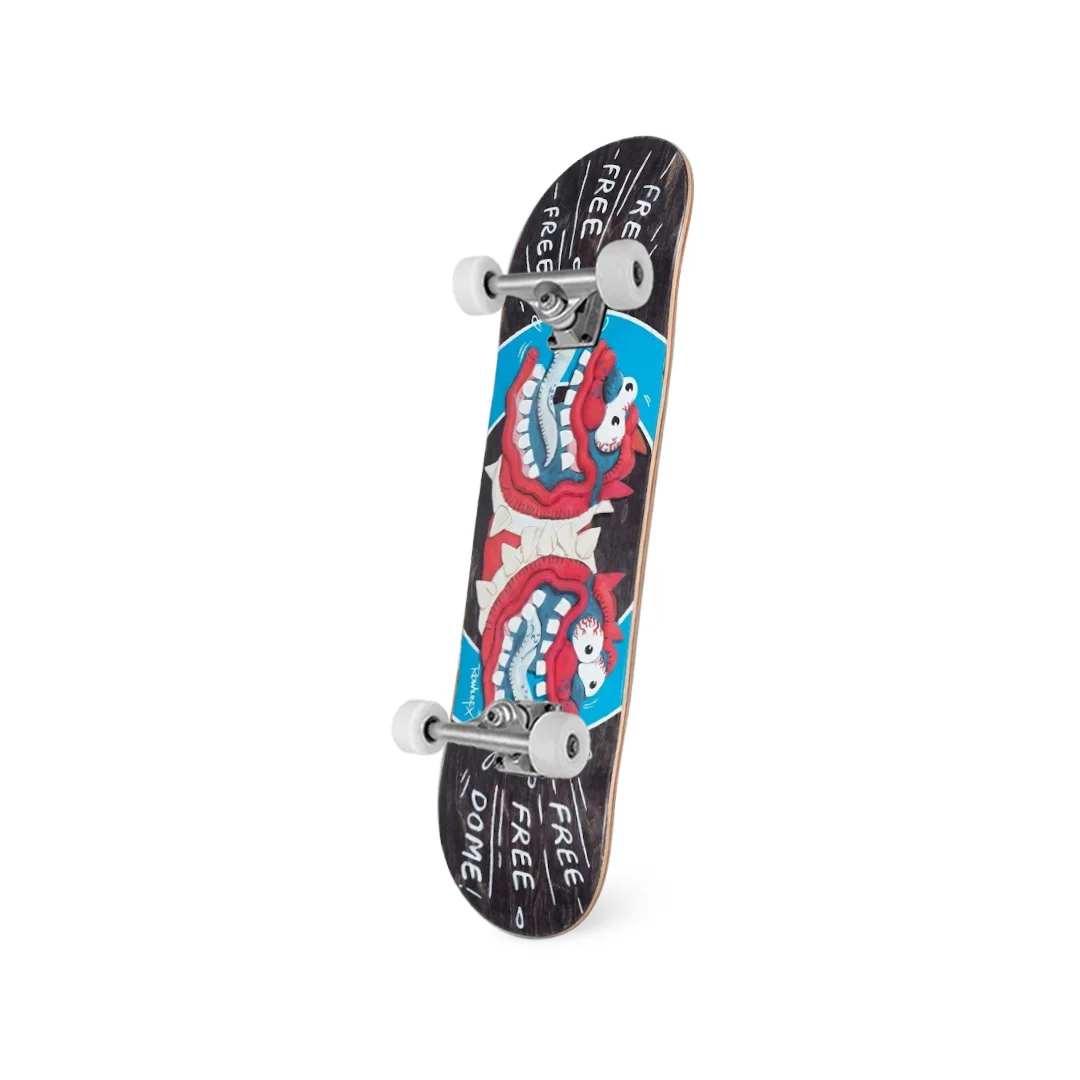 Patineta Armada Free Dome Pro Model Geoff Rowley Bulldogs 8.375″ ¡Un equipo diseñado para aguantar el castigo más rudo en el asfalto! Esta patineta armada monta el espectacular deck “Rowley Bulldogs” de la marca Free Dome en la medida híbrida de 8.375″. Es el setup definitivo para el patinador que busca un equipo con muchísima estabilidad para caer de grandes alturas o ir a toda velocidad, sin sentirse en una tabla torpe o pesada. Ensamblada con componentes duraderos y de gran calidad, está lista para acompañarte a desbloquear tus límites con la misma agresividad que el mismísimo Geoff Rowley.