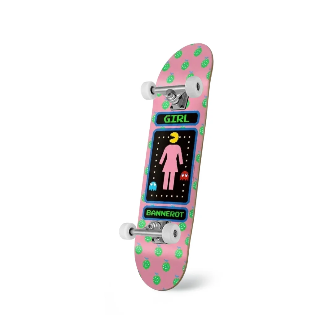 Patineta Armada Girl Bannerot Pac-Man 8.5″ ¡Tu setup listo para comerse el mundo! Esta patineta armada incluye el deck Pro Model Bannerot Pac-Man de Girl en la medida amplia de 8.5″. Ensamblada profesionalmente con componentes de alto rendimiento, es la opción definitiva para quienes buscan estabilidad y estilo retro. Equipada con trucks Confiables, ruedas 54mm 100A y baleros ABEC 7, garantiza potencia en cada empuje.