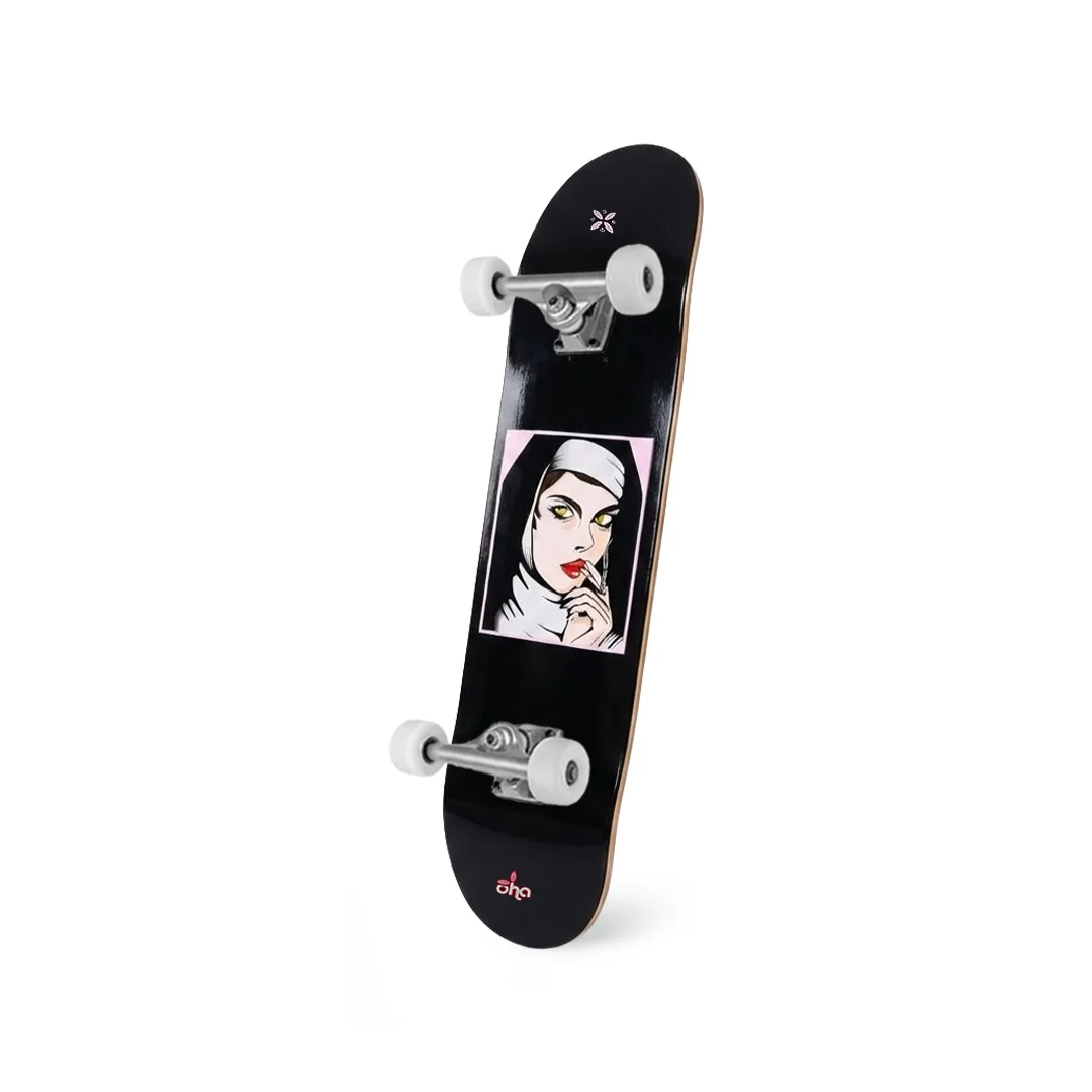 Patineta Armada Oha Monja 8.5″: ¡Poder absoluto y lista para el asfalto! Esta patineta armada combina el arte provocativo de la serie “Monja” de Oha Skateboards con una configuración de alto rendimiento. Al montar el deck de 8.5″, este setup se convierte en la opción ideal para patinadores que buscan una base de aterrizaje masiva y estabilidad inigualable en bowls y rampas. Ensamblada con componentes de alta resistencia, esta patineta ofrece un rodaje fluido y la durabilidad necesaria para soportar el castigo de las sesiones más intensas.