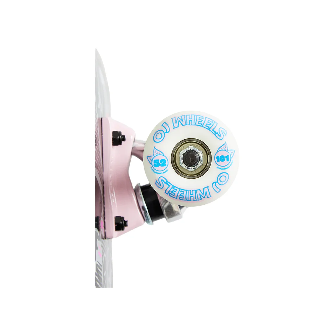 Ruedas OJ Wheels: Incluye ruedas de uretano de alto rebote (típicamente de 52mm a 54mm), ideales para mantener la velocidad y ofrecer un deslizamiento suave tanto en parques como en calle.