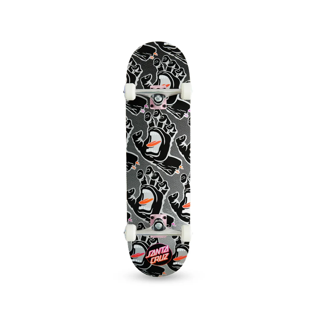 Patineta Completa Santa Cruz Gradient Hands 8.5″ ¡Poder, herencia y rendimiento premium en un solo setup! Esta patineta armada presenta uno de los gráficos más icónicos de la historia del skate, la “Screaming Hand”, en un patrón repetitivo con degradados modernos que destacan sobre un fondo texturizado. Con su medida de 8.5″, es la plataforma ideal para quienes buscan máxima estabilidad y control, ya sea destruyendo un bowl, volando en rampas o dominando el asfalto con seguridad.