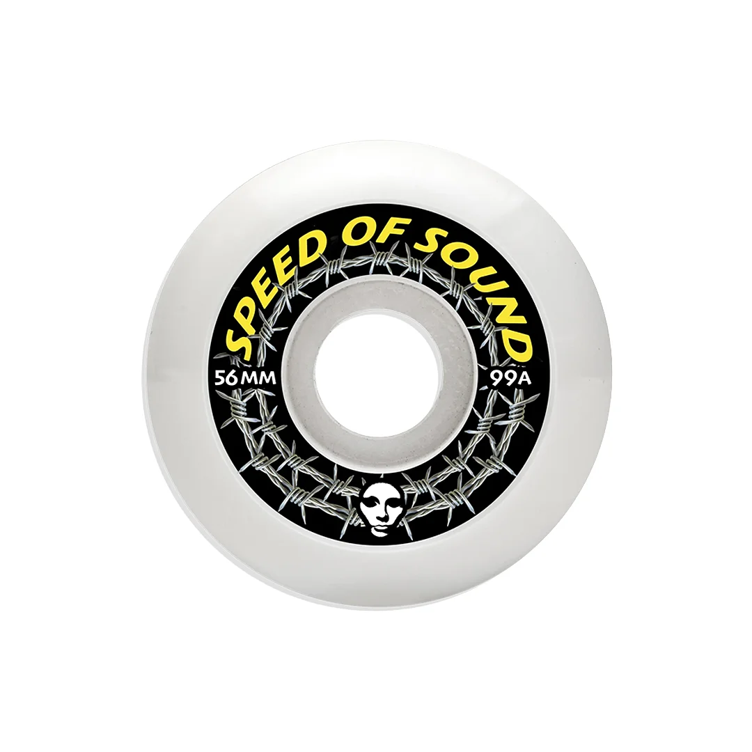 Ruedas Opera SOS Barbwire Asymmetrical 99A ¡Rómpelo todo con la velocidad del sonido y un agarre agresivo! Las ruedas Opera, en su modelo Speed of Sound (SOS), presentan un diseño oscuro y técnico con gráficos de alambre de púas y el logotipo de la máscara característico de la marca en contraste sobre uretano blanco. Con una dureza de 99A y un tamaño de 56mm, estas ruedas son el setup definitivo para patinadores que buscan dominar transiciones, bowls y parques con un control total y una respuesta rápida. Su forma asimétrica ofrece una versatilidad única, permitiéndote elegir entre un lado con perfil más redondeado para trucos técnicos o un lado más cónico para mayor estabilidad en grinds.