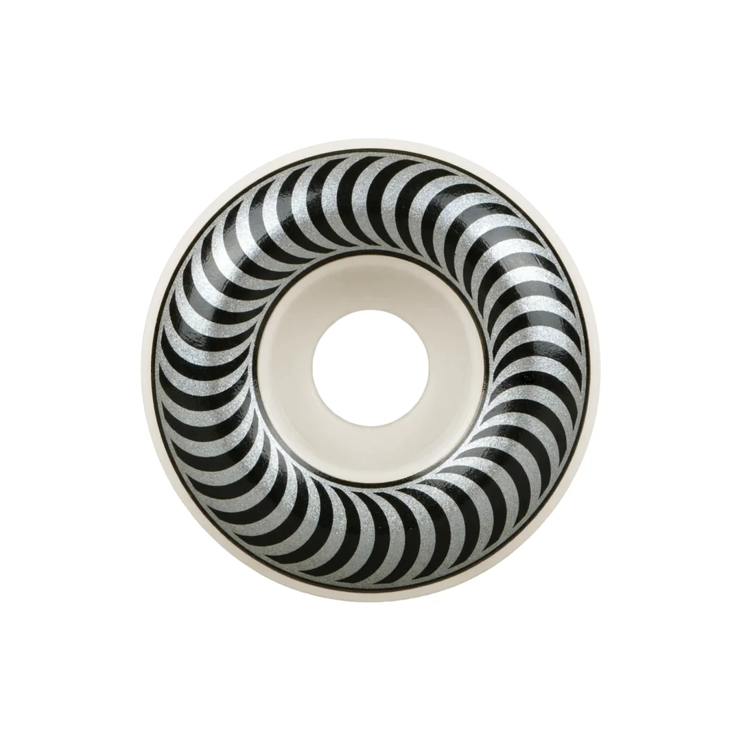 Ruedas Spitfire Classics 99D Silver 54mm. Experimenta el estándar de oro en rendimiento con las Spitfire Classics. Este modelo presenta la forma “Classic” original de la marca, reconocida mundialmente por su velocidad y control inigualables. Con un diseño elegante en color blanco y gráficos plateados metálicos, estas ruedas ofrecen la estética icónica de la flama de Spitfire con una tecnología de uretano diseñada para no deformarse bajo presión.