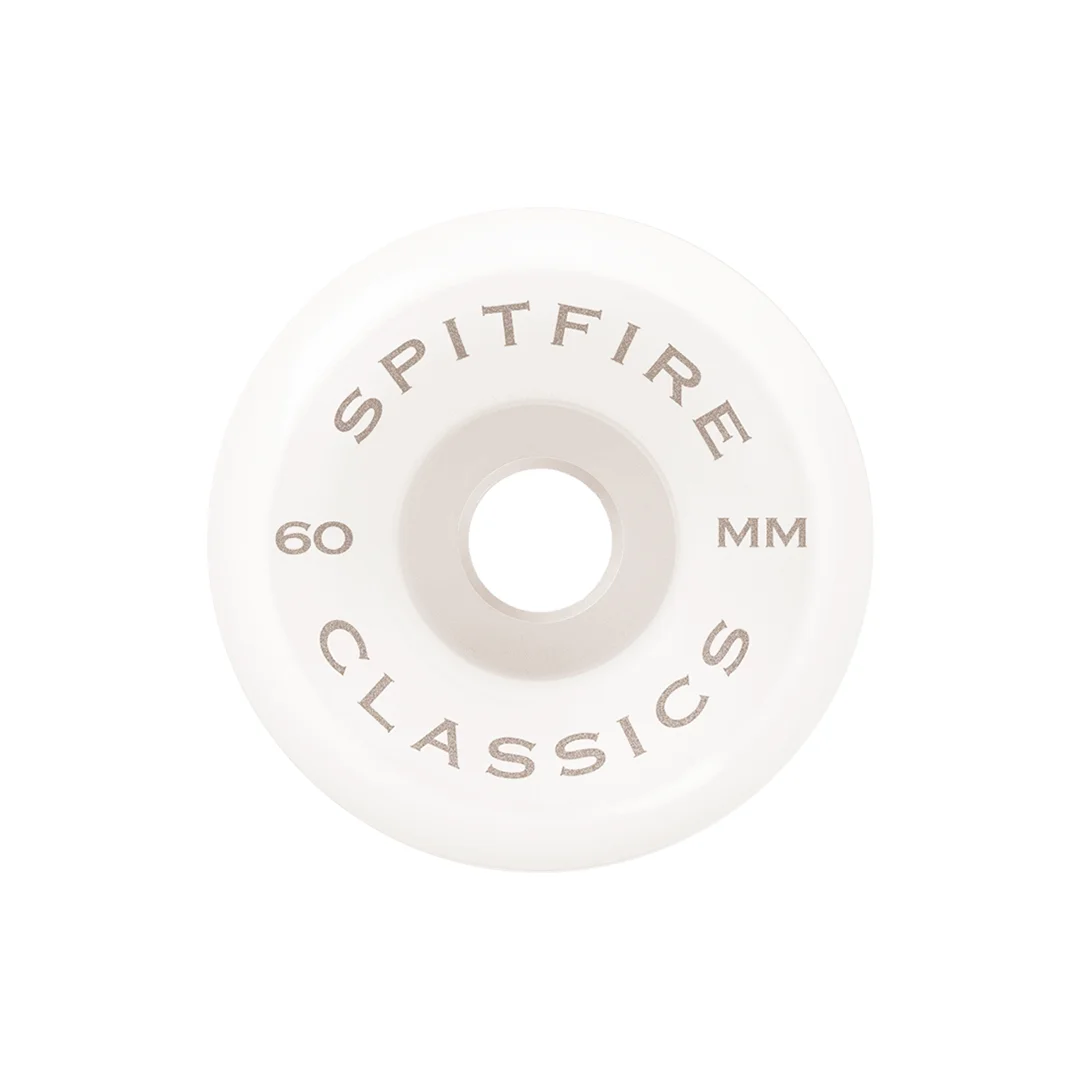 Ruedas Spitfire 99D Classics White 60mm. Vuelve a las raíces con el tamaño más grande de la forma Classics. Estas ruedas de 60mm son verdaderos tanques diseñados para devorar cualquier terreno, ofreciendo una inercia masiva que te permitirá mantener la velocidad en las rampas más grandes o en desplazamientos largos.