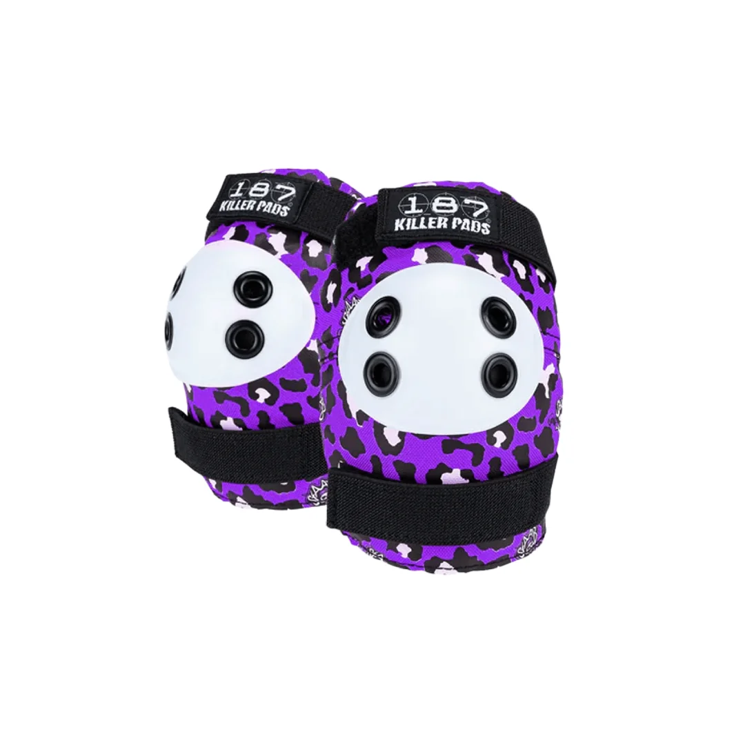 Set 187 Killer Pads Junior Six Pack Staab Purple. El set Staab Purple ofrece la misma protección legendaria de 187 pero escalada perfectamente para los futuros profesionales. Con la firma de la leyenda Tony Staab y un diseño de leopardo morado con tapas blancas, este kit garantiza que los niños patinen con confianza y máximo estilo.