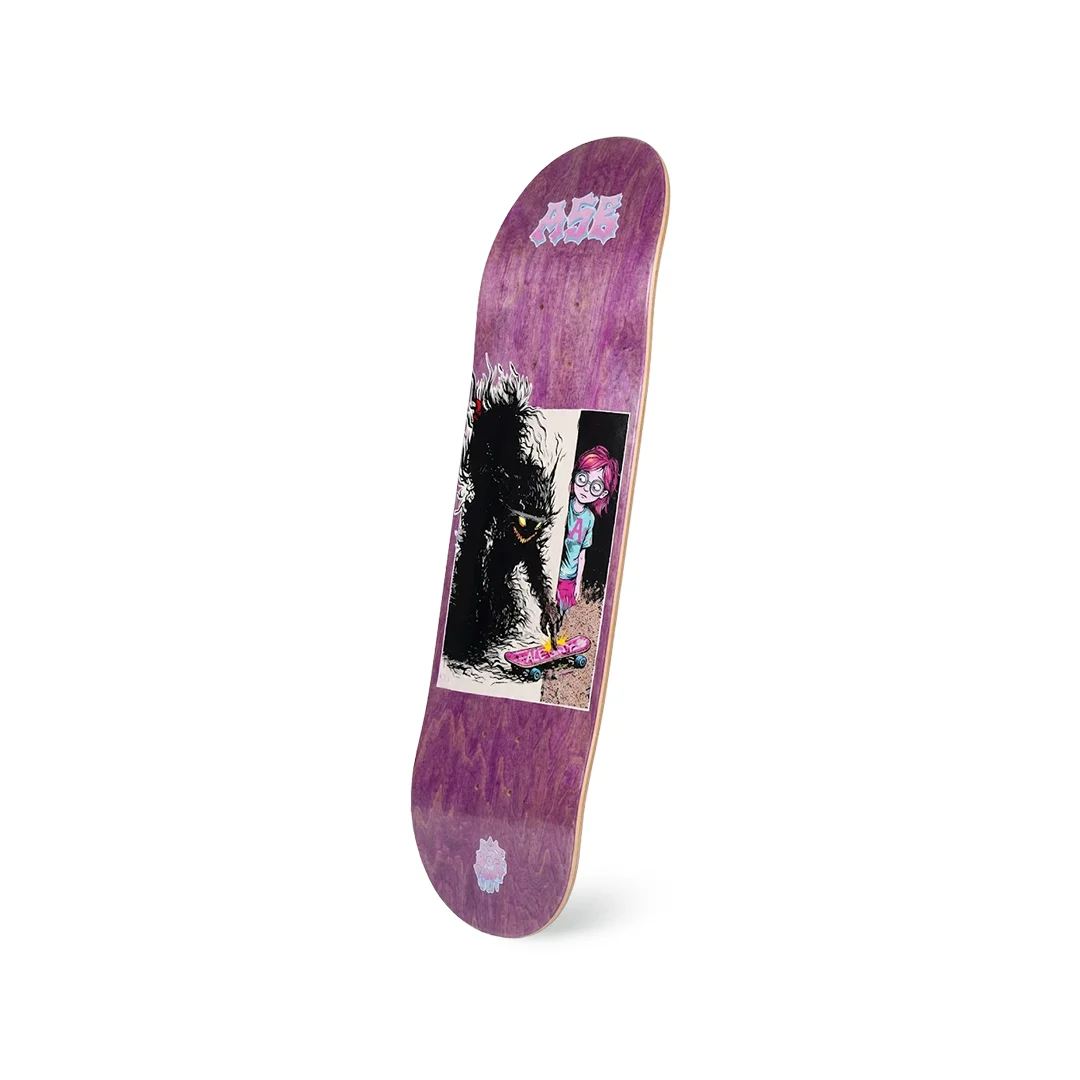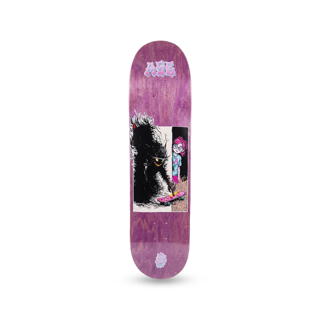 Tabla Alebrije Malas Influencias 8.25″ ¡Déjate llevar por la mejor “mala influencia” de tu vida! Esta tabla de la marca mexicana Alebrije presenta el modelo “Malas Influencias”, con un gráfico narrativo espectacular sobre un fondo de madera teñida en color morado vibrante. La ilustración muestra el momento exacto en que un monstruo sombra le entrega su primera patineta a una niña, simbolizando esa atracción irresistible y rebelde por el skateboarding. Con un ancho de 8.25″, es la medida más versátil del mercado actual: perfecta para quienes buscan el equilibrio ideal entre la estabilidad para aprender y la agilidad para empezar a sacar trucos técnicos.