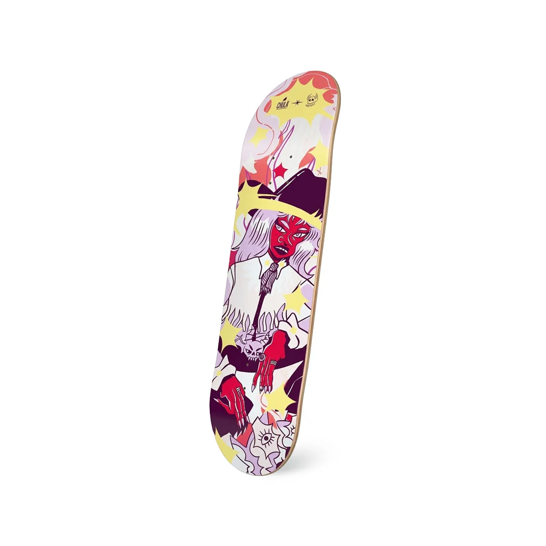 Tabla Chula Viejo Oeste ¡Conquista el asfalto con todo el estilo del “salvaje oeste” moderno! Esta tabla de la marca Chula Skateboards presenta el modelo “Viejo Oeste”, un diseño que destaca por su ilustración de alto contraste y su vibra rebelde. El gráfico muestra a una forajida mística sobre un fondo de colores pasteles y estrellas vibrantes, creando un equilibrio visual único. Disponible en dos medidas: 8″ para quienes buscan una tabla ligera y rápida para trucos de piso, y 8.25″ para aquellos que prefieren mayor estabilidad en cada aterrizaje.