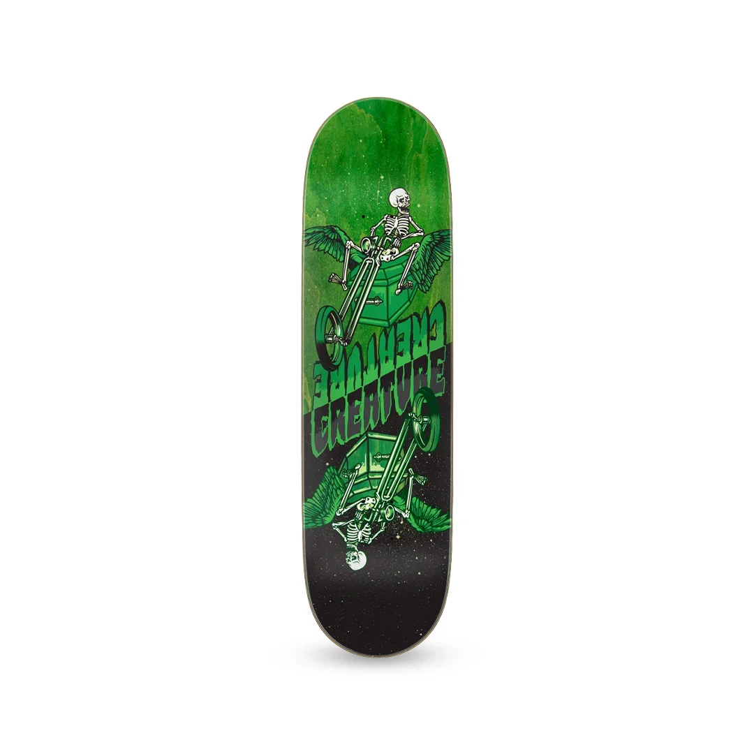 • Identidad Creature: El gráfico Fiend Twins lleva el sello visual oscuro y hardcore característico de la marca verde y negra.