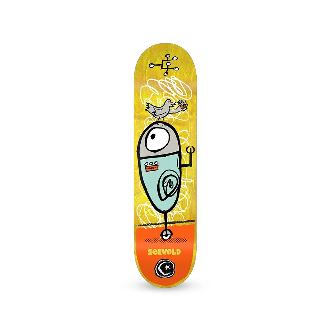 Tabla Foundation Dakota Servold Robot 8.5″ ¡Patina con la energía de un pro y un diseño fuera de lo común! Esta tabla presenta el pro-model de Dakota Servold con el gráfico “Robot”, una ilustración con estilo de dibujo libre que muestra a un curioso robot monociclo con un ave en su cabeza sobre un fondo amarillo vibrante con vetas de madera natural. Con una medida de 8.5″, esta tabla ofrece una plataforma amplia y ultra estable, ideal para quienes buscan máxima confianza en barandales, transiciones y aterrizajes pesados. Fabricada con 7 capas de maple de alta densidad, garantiza ese pop seco y duradero que ha hecho famosa a la “F” de Foundation en todo el mundo.