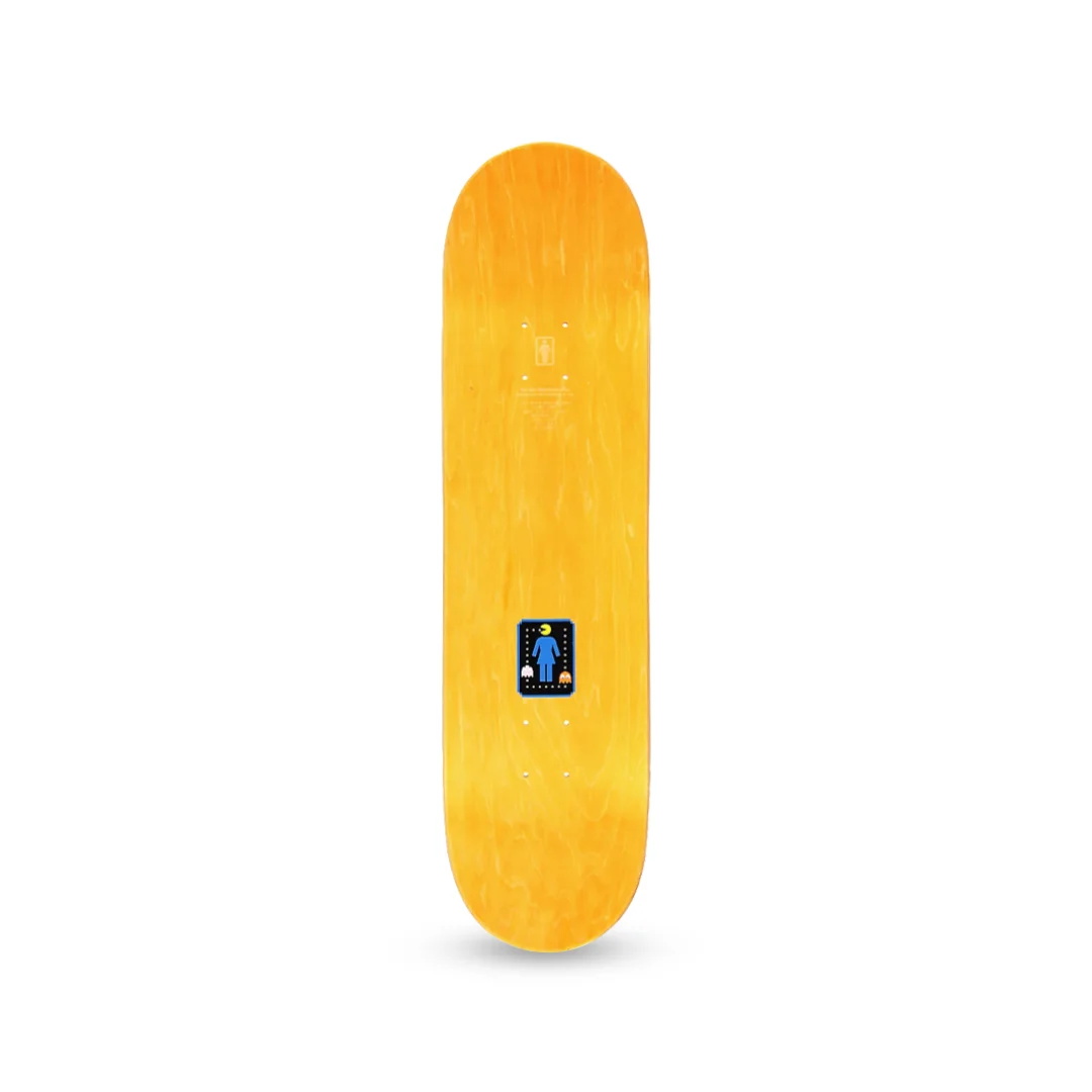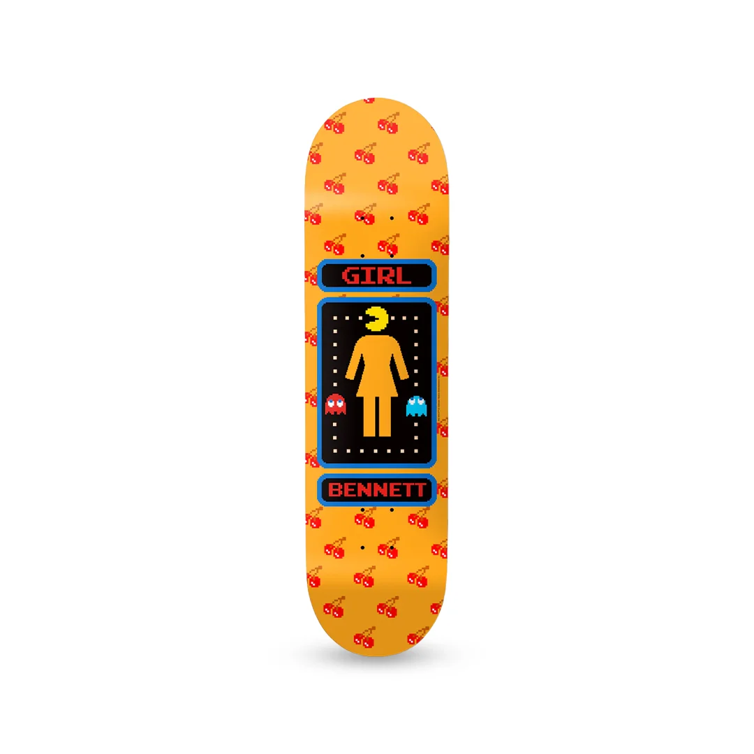 Tabla Girl Bennet Pac-Man 8.5″ ¡Cómete el asfalto con nostalgia gamer! Esta tabla Girl Skateboards, Pro Model de Niels Bennett, presenta una colaboración especial con Pac-Man, luciendo gráficos icónicos del videojuego arcade más famoso de la historia. Con un ancho generoso de 8.5″, es la plataforma ideal para skaters que buscan estabilidad extra, amantes de las transiciones o quienes simplemente prefieren más espacio bajo sus pies. Fabricada con 7 capas de maple de alta calidad, ofrece el rendimiento legendario de Girl.