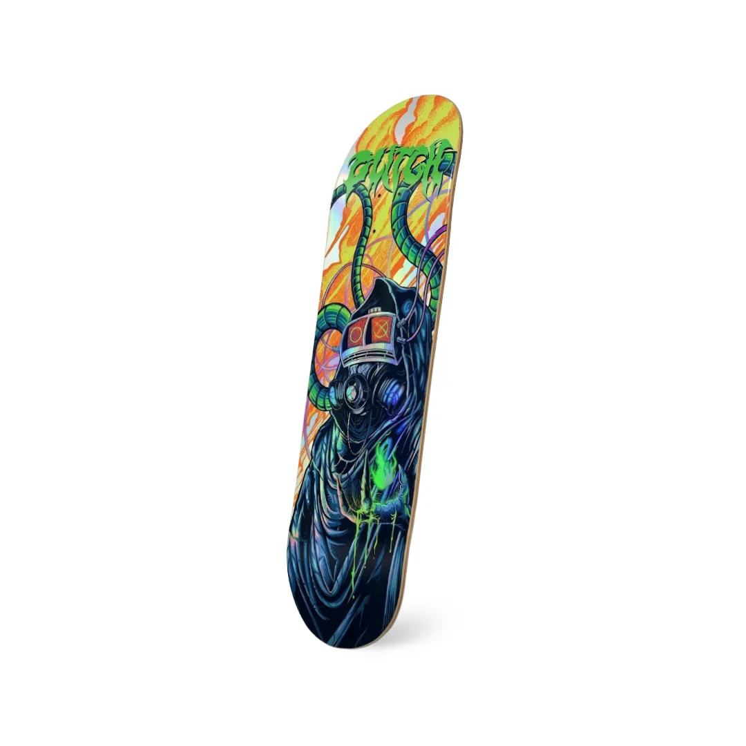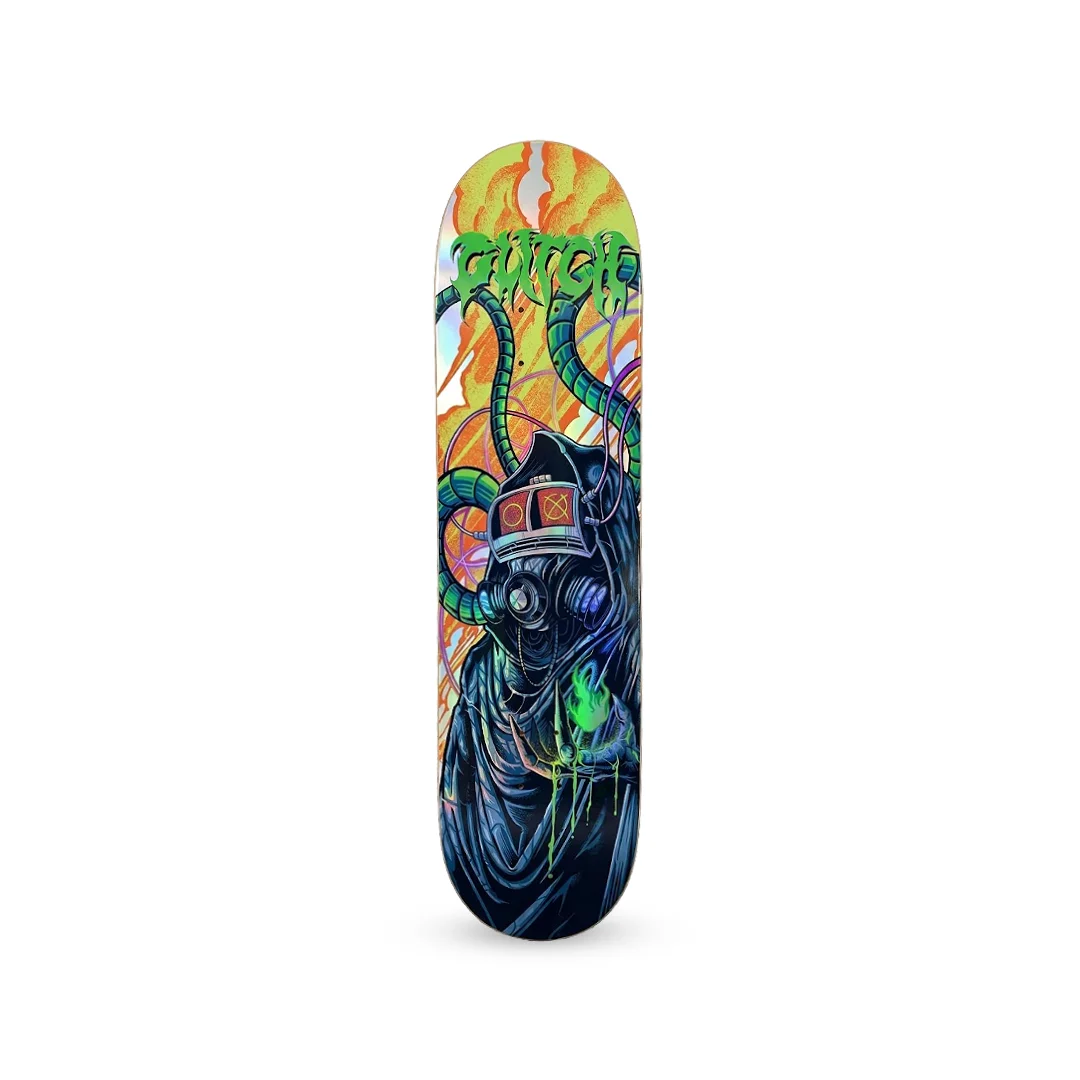 Tabla Glitch Hechicero Foil 8.25″ ¡Domina las artes místicas del skate con una estética futurista inigualable! Esta tabla presenta el diseño “Hechicero”, una ilustración épica de un brujo tecnológico con ojos cibernéticos y una llama verde, resaltada sobre un acabado Silver Foil que genera reflejos metálicos sorprendentes bajo la luz. Fabricada con 7 capas de maple profesional, es el deck perfecto para quienes buscan combinar un arte de fantasía oscura con el rendimiento técnico de nivel experto.