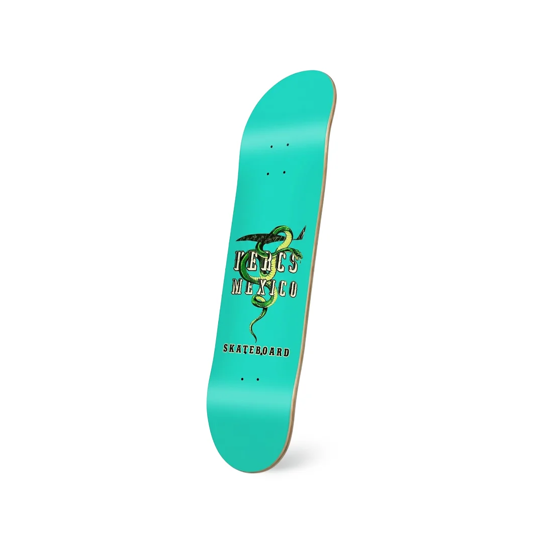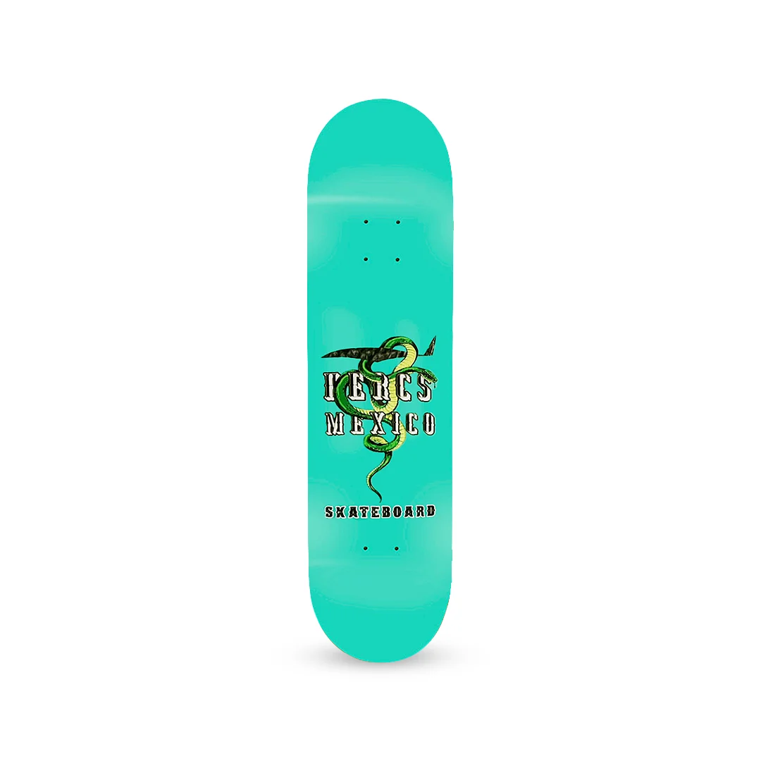 Tabla Hercs Serpiente 8″ / 8.25″ ¡Lleva el orgullo del skate nacional con un estilo letal y vibrante! Este deck de Hercs México presenta una ilustración detallada de una serpiente entrelazada con el logotipo de la marca sobre un fondo color turquesa sólido que no pasa desapercibido. Fabricada con 7 capas de maple profesional, esta tabla ofrece un pop seco y una durabilidad excepcional, ideal para quienes buscan representar el talento local con un equipo de alto rendimiento técnico diseñado para resistir las sesiones más pesadas.