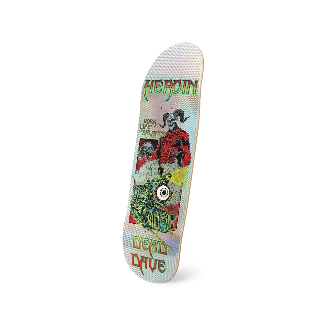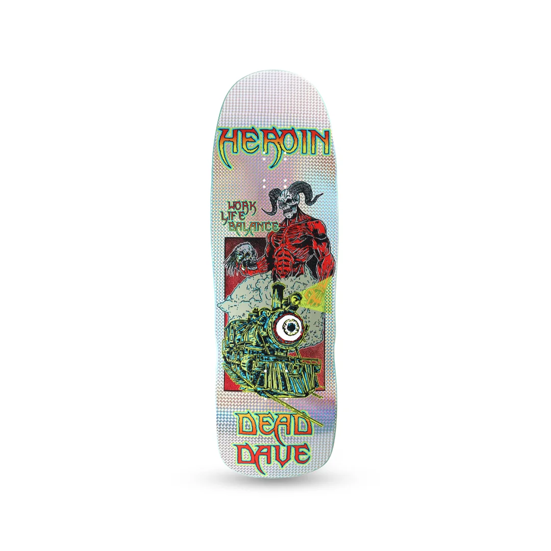 Tabla Heroin Dead Dave Hellscape Shaped 10.1″ ¡Desata la locura en los bordillos y bowls con este barco! Esta tabla es el Pro Model del inigualable Dead Dave para la marca de culto Heroin Skateboards. El diseño “Hellscape” nos regala un arte caótico, oscuro y fascinante, fiel a la esencia destructora de la marca. Pero lo que realmente te volará la cabeza es su shape personalizado y su masivo ancho de 10.1″. No es una tabla normal; es una plataforma gigante diseñada para encajar slappies eternos, surfear transiciones gigantes y divertirte como nunca en el concreto. Fabricada con madera de primera calidad para soportar el trato más salvaje, viene además con un detalle estético que la hace única desde arriba.