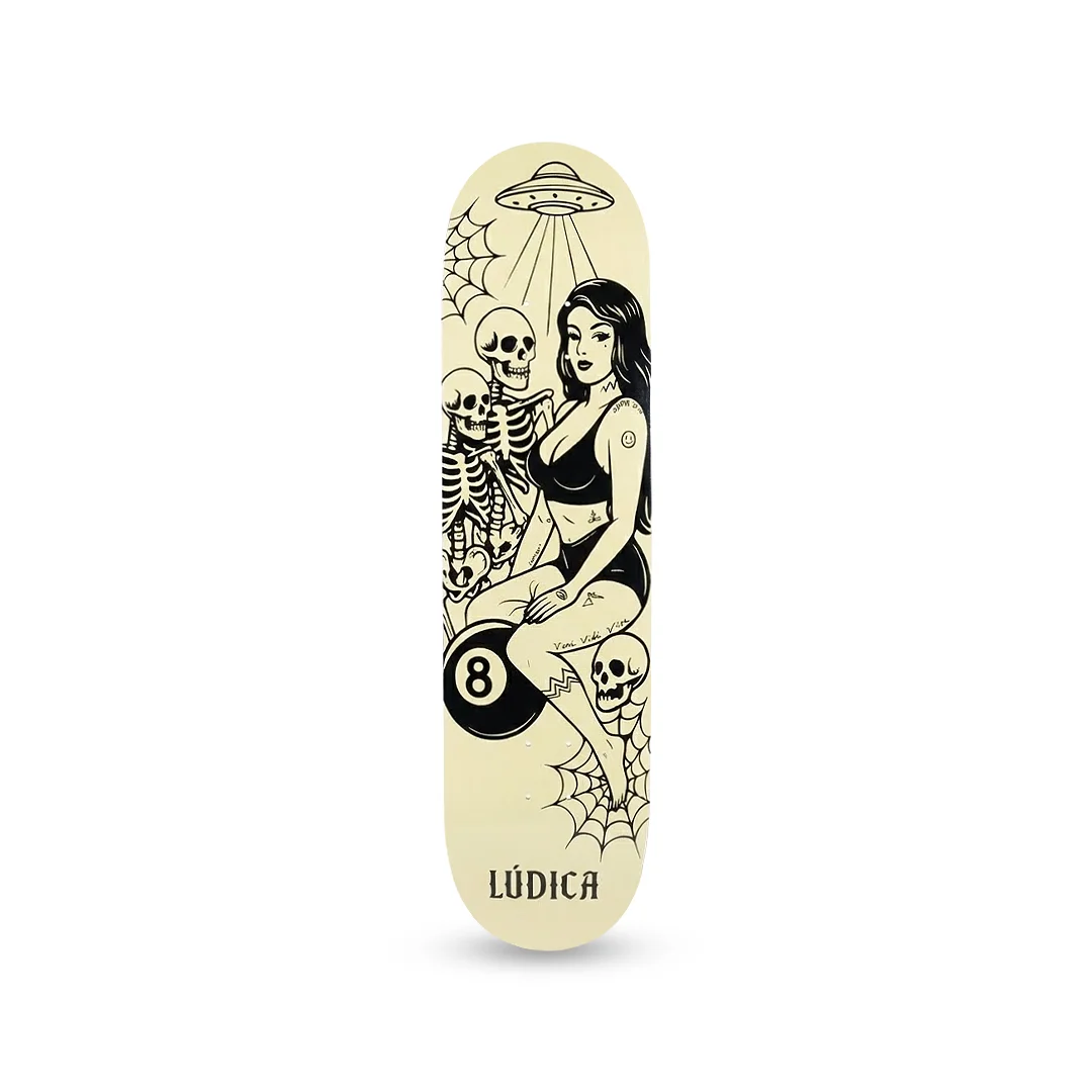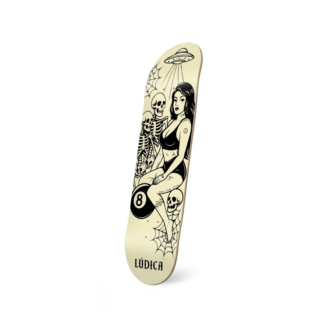 Tabla Lúdica Bola 8 Hueso 8.25″ ¡Define tu propia suerte! Esta tabla de Lúdica Skateboards presenta el gráfico “Bola 8 Hueso”, una ilustración que juega con la iconografía clásica del billar y elementos orgánicos, creando una estética misteriosa y atractiva. Con la medida versátil de 8.25″, se encuentra en el punto medio perfecto: ofrece más estabilidad que una 8.0″ para caer trucos con confianza, pero sigue siendo lo suficientemente ligera para rotar flips con facilidad. Fabricada con 7 capas de maple selecto para garantizar resistencia y un pop sólido.