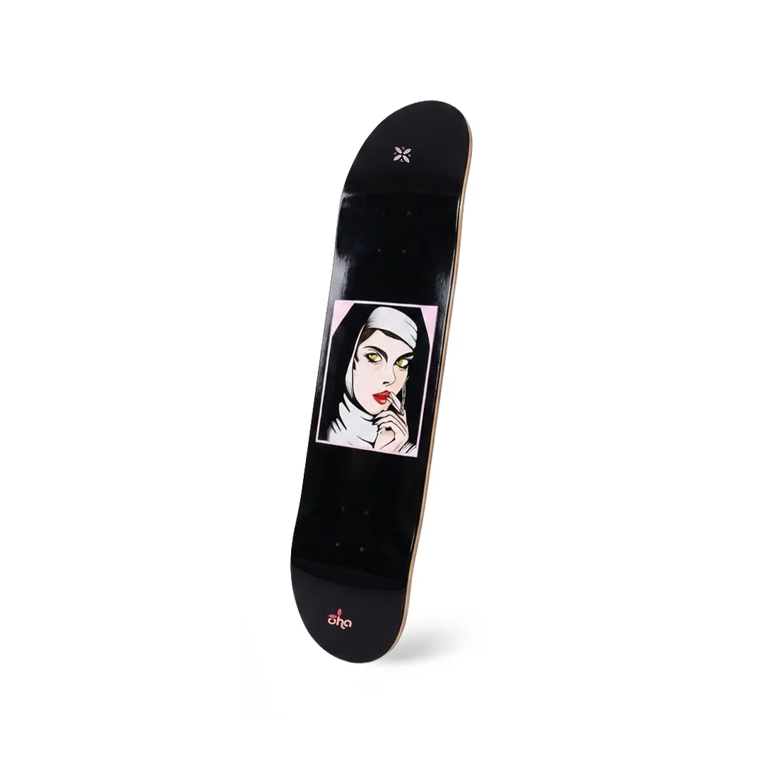 Tabla Oha Monja 8.5″: ¡Estilo sacro y estabilidad radical! Esta tabla de Oha Skateboards presenta el gráfico “Monja”, una pieza visualmente potente que combina la estética clásica con la irreverencia propia del skate. Con un ancho de 8.5″, es la plataforma definitiva para los patinadores que buscan el máximo control en transiciones, bowls y rampas de gran tamaño. Fabricada con 7 capas de maple canadiense premium, esta tabla garantiza un pop explosivo y una durabilidad superior para resistir los impactos más exigentes del skate pesado.