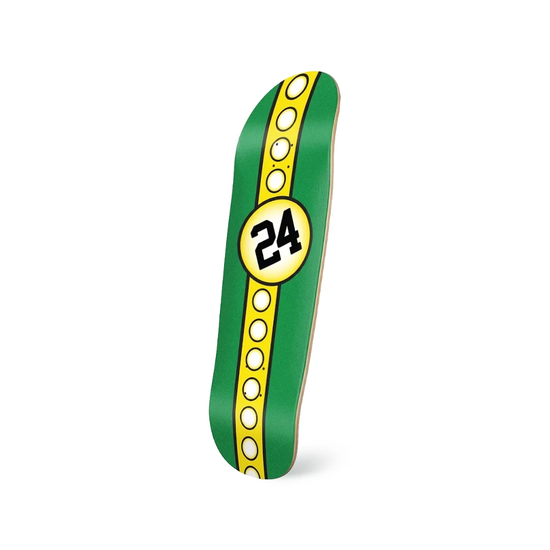 Tabla Shake Junt Racer Cruiser 8.5″ ¡Pon a prueba tu velocidad con el estilo clásico de Shake Junt! Esta tabla presenta el diseño “Racer”, con una estética inspirada en los autos de carreras retro: un verde vibrante, una franja amarilla central y el número “24” destacando en el medio. A diferencia de las tablas estándar, esta cuenta con un shape tipo cruiser ligeramente más ancho y cómodo, fabricado con 7 capas de maple profesional para garantizar un pop explosivo y una resistencia estructural de primer nivel.