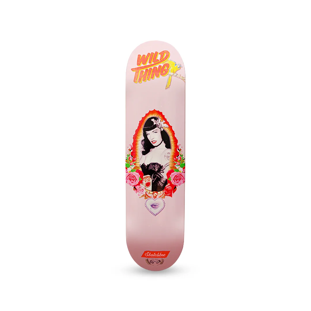 – Diseño “Wild Thing”: Un gráfico de la famosa Bettie Page en fondo rosa y lleno de energía que inyecta personalidad a tu setup.