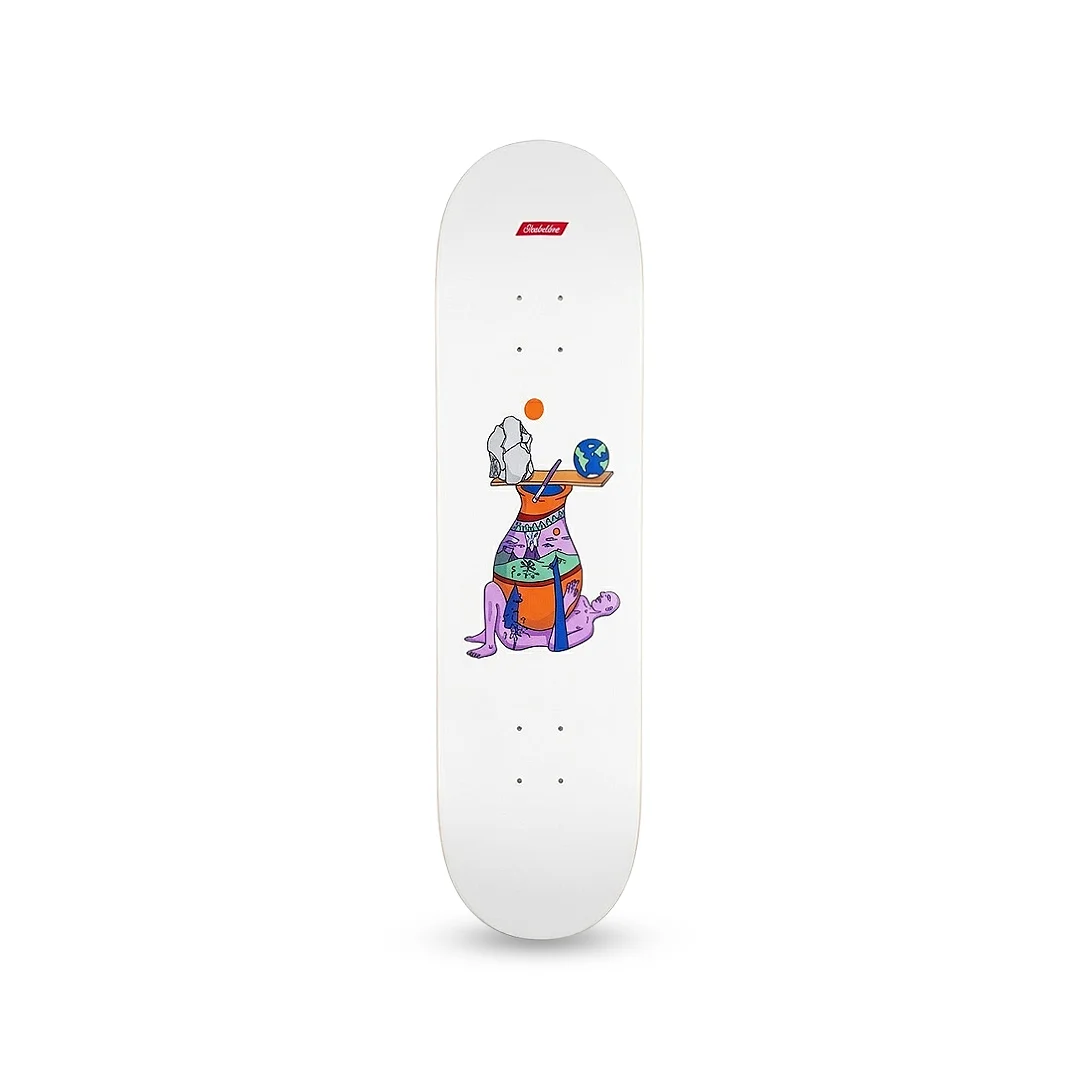 Tabla Skatelibre Wobble Pot ¡Añade una dosis de surrealismo a tu setup con un diseño que desafía la gravedad! Esta tabla de Skatelibre presenta el modelo “Wobble Pot”, un gráfico artístico que muestra una vasija decorada con paisajes, equilibrando elementos simbólicos como una roca y el planeta Tierra sobre una figura humana en una posición abstracta. Con una base blanca impecable y toques de colores vibrantes, esta tabla es ideal para quienes buscan un estilo visual profundo y diferenciado. Construida con maple profesional, ofrece el pop y la resistencia necesarios para elevar tu patinaje al siguiente nivel.