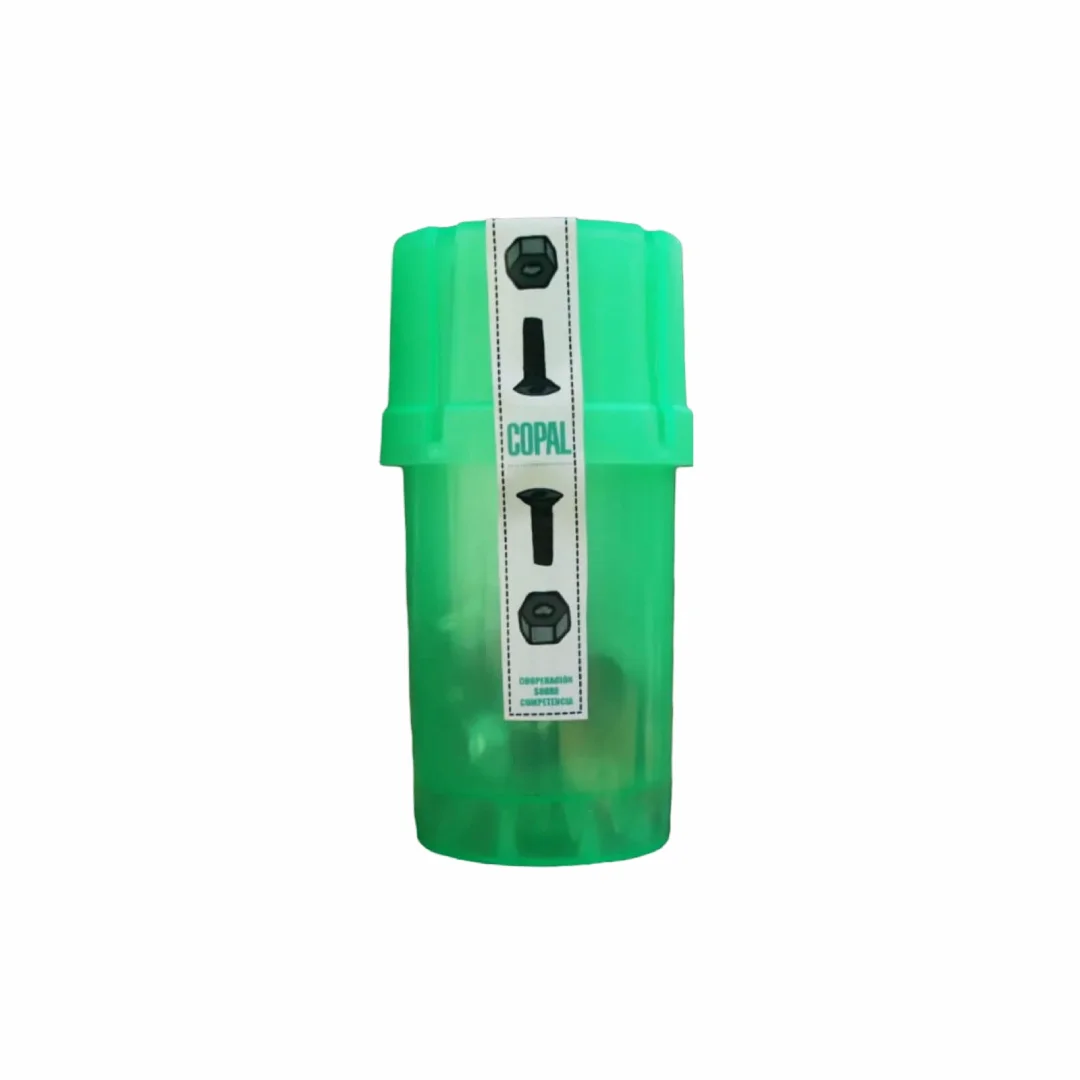 Tornillos Copal Allen 1″ + Moledor. Eleva el nivel de tu setup con el kit funcional de Copal. Este paquete no solo te ofrece tornillería de alta resistencia para asegurar tus trucks, sino que viene contenido en un empaque diseñado ingeniosamente para funcionar como un moledor (grinder) de especias o hierbas. Es la opción ideal para el patinador que busca utilidad extra y un diseño con identidad cultural en sus accesorios.