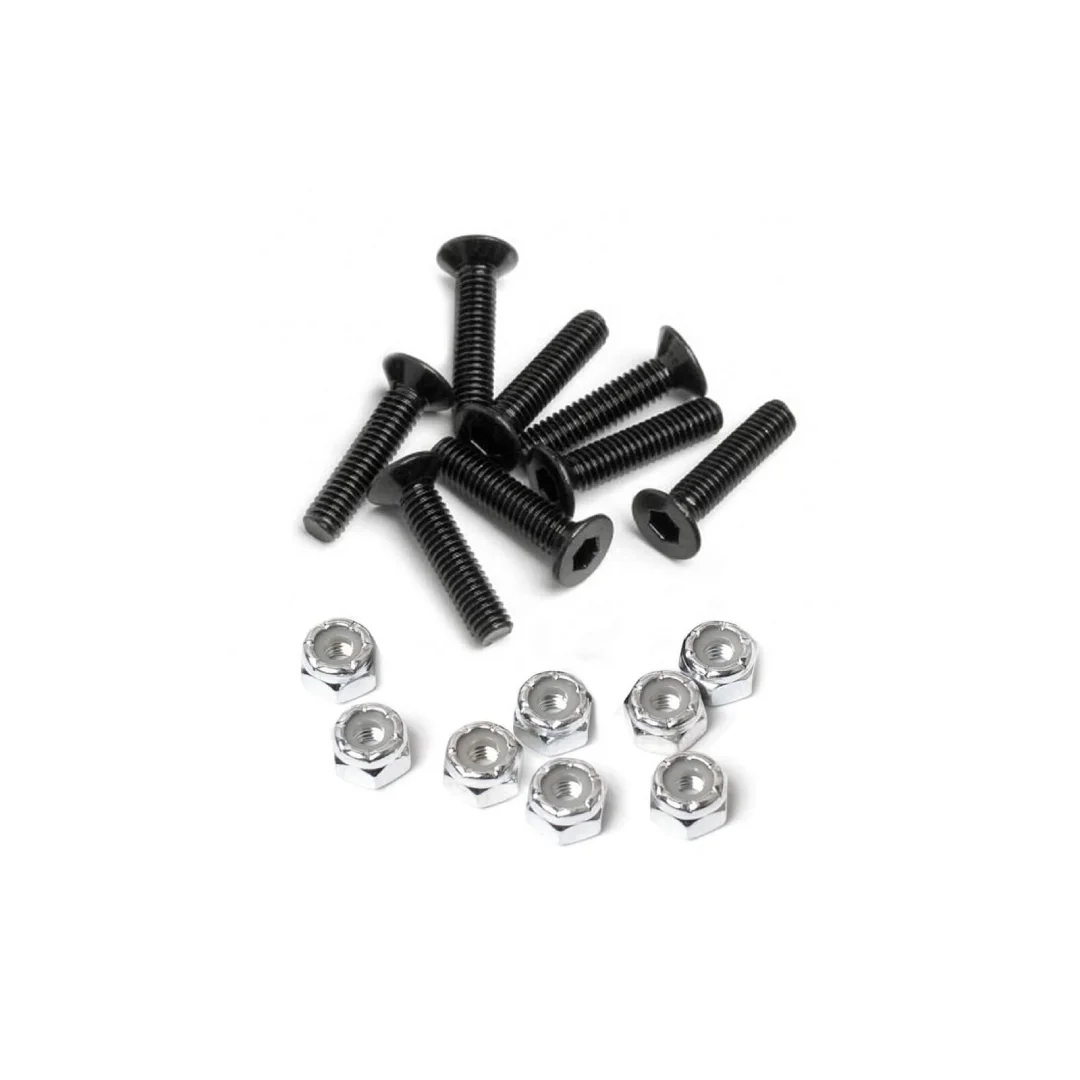 – ¿Cuántos tornillos trae? El kit incluye el juego completo de 8 tornillos y 8 tuercas necesarios para armar un par de trucks.
