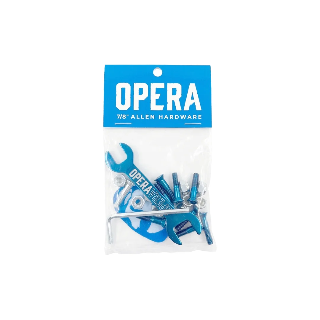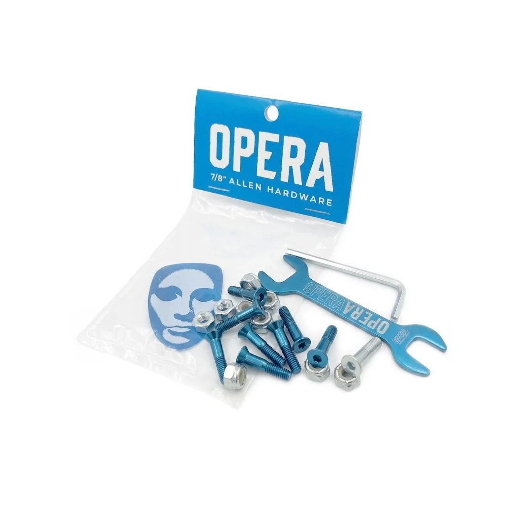 Tornillos Opera Allen 7/8″. Dale un toque de color y distinción a tu setup con los tornillos Opera en color azul metálico. Con una medida técnica de 7/8″, estos tornillos son ideales para patinadores que buscan reducir peso y evitar que el tornillo sobresalga demasiado de la tuerca. Su acabado anodizado no solo luce increíble, sino que añade una capa extra de protección contra la corrosión.