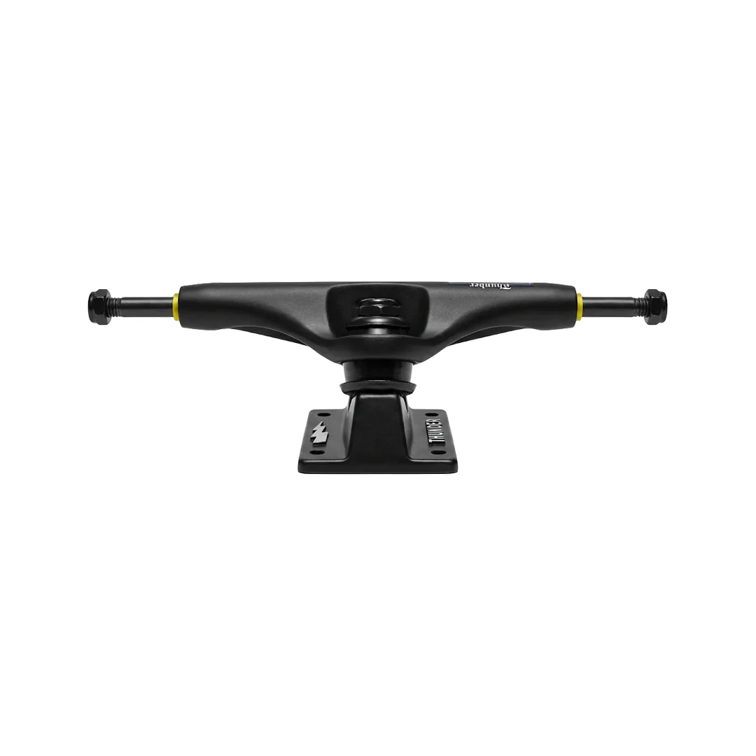 Trucks Thunder Hollow Lights Night II 148 ¡El sigilo de la noche combinado con la respuesta más rápida del mercado! La línea “Night” de Thunder es aclamada por su agresiva y elegante estética completamente en color negro (tanto el hanger como la base), perfecta para quienes prefieren un setup sobrio pero letal. Este modelo en particular pertenece a la categoría Hollow Lights, lo que significa que están construidos con una placa base forjada a presión y un kingpin (tornillo central) totalmente hueco, reduciendo drásticamente el peso general de tu tabla para que los flips giren sin esfuerzo. Cuentan con detalles visuales únicos, como su etiqueta azul de autenticidad “Hollow Lights”, gomas negras, relieves del clásico rayo de Thunder en la base y unos sutiles aros amarillos en los extremos del eje. Con la codiciada medida 148, son el motor definitivo para las tablas de 8.25″.