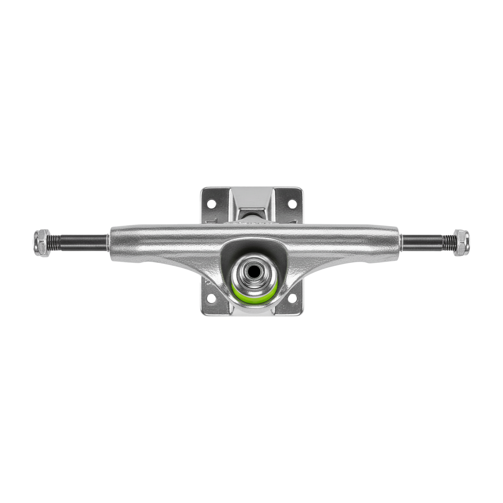 Hechos de aleación de acero, duraderos para cualquier estilo de skate, resistentes al impacto y a la abrasión, con gomas de dureza media y placa base de aluminio y kingpin de grado 8. Trucks hollow (huecos) del kingpin.